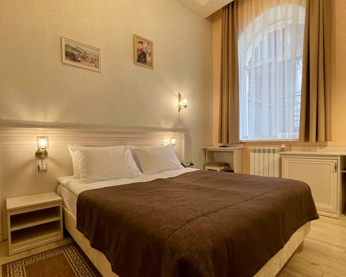 Отель входит в сеть «Русская классика» и оформлен в стиле, вдохновленном романом М.Ю. Лермонтова «Герой нашего времени». Из окон открываются виды на парк и Кавказские горы. Здание построено в 2021 году, номерной фонд оснащен современными удобствами.