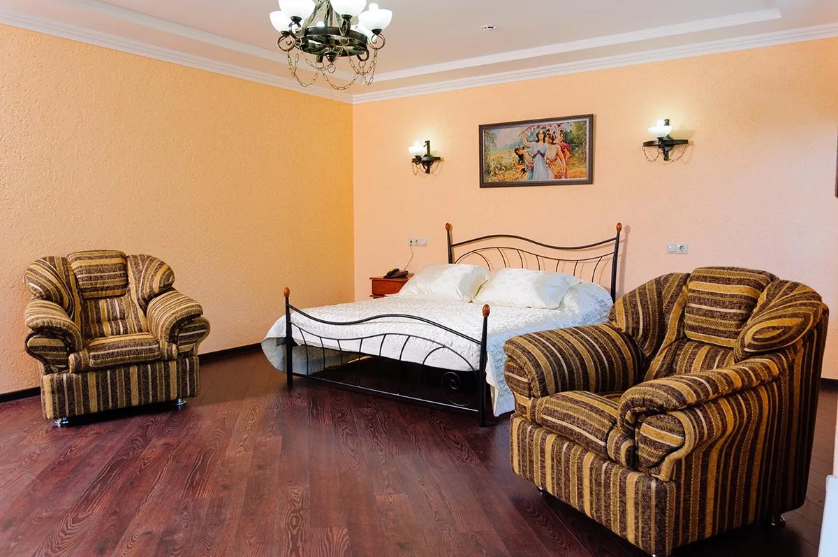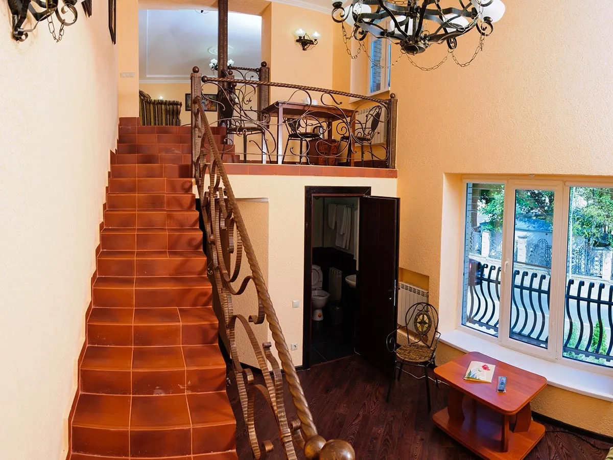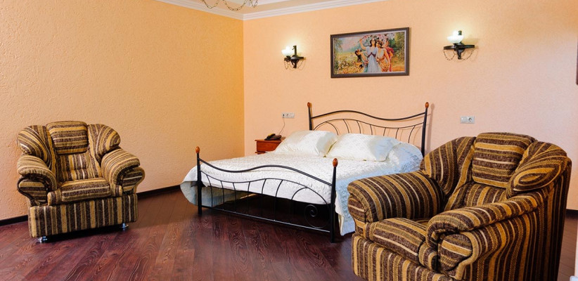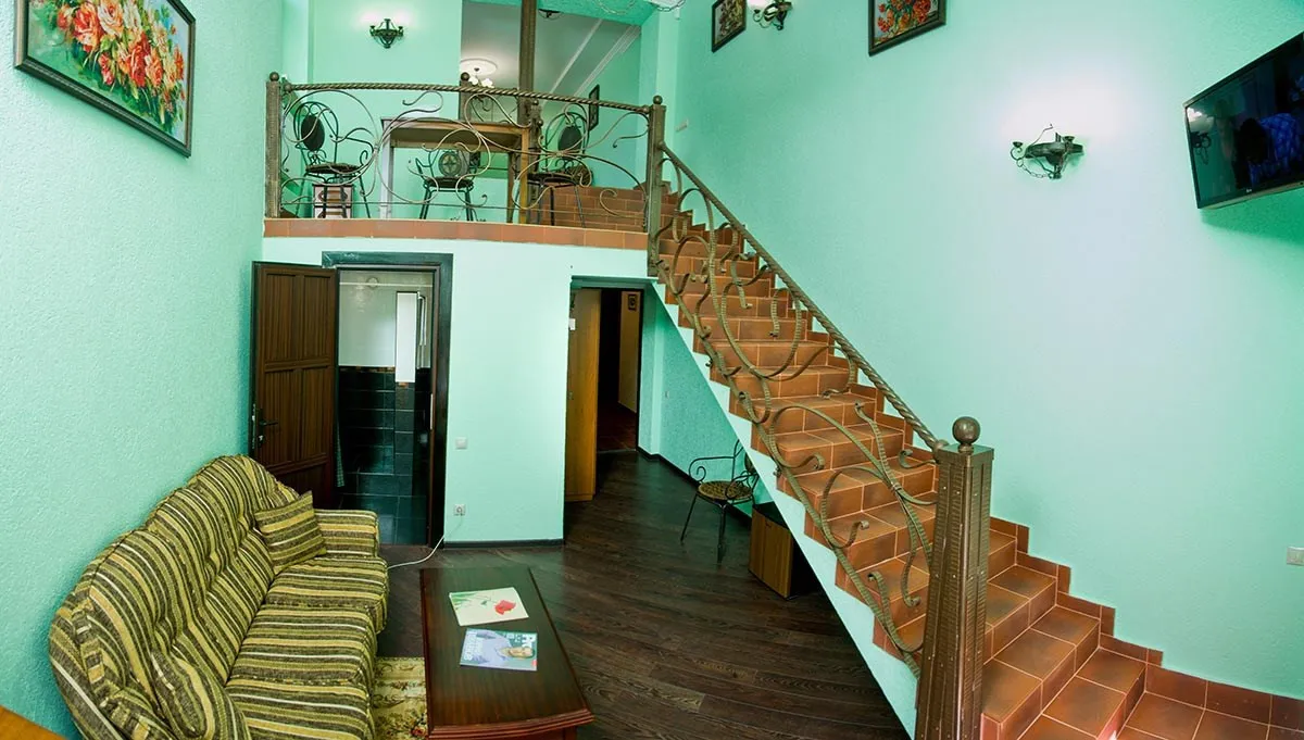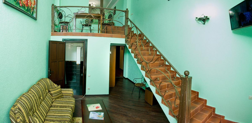 26 м2, двуспальная кровать, диван-кровать. Количество гостей: до 4Двухуровневая комнат Люкс