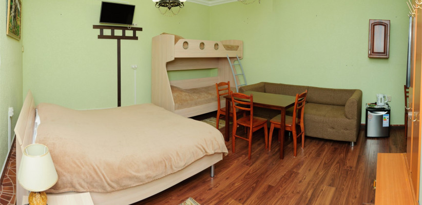 26 м2, двуспальная кровать, двухъярусная кровать. Количество гостей: до 4Комната улучшенный стандарт