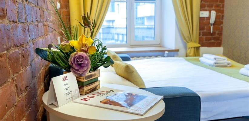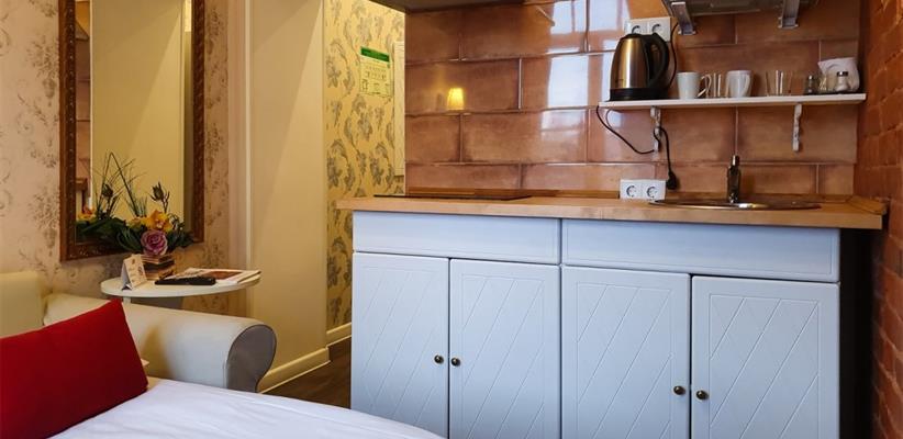 Двухместный номер с кроватью Smart - 12 кв. м, до 2 гостей, в номере есть диван-кровать, интернет, телевизор, телефон, холодильник и собственная ванная комната с душем и феном, туалетными принадлежностями.
