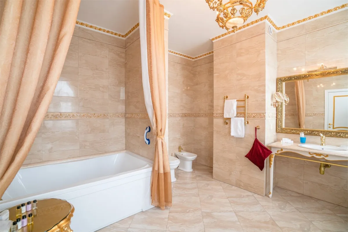 75 м2, трехкомнатный номер, состоящий из уютной гостиной с обеденным столом, мягкой зоной отдыха с камином и выходом на собственную террасу, просторной спальни с двуспальной кроватью, второй спальни с односпальной кроватью. Два санузла. Количество гостей: 4Екатерининский (Петровский Причал)