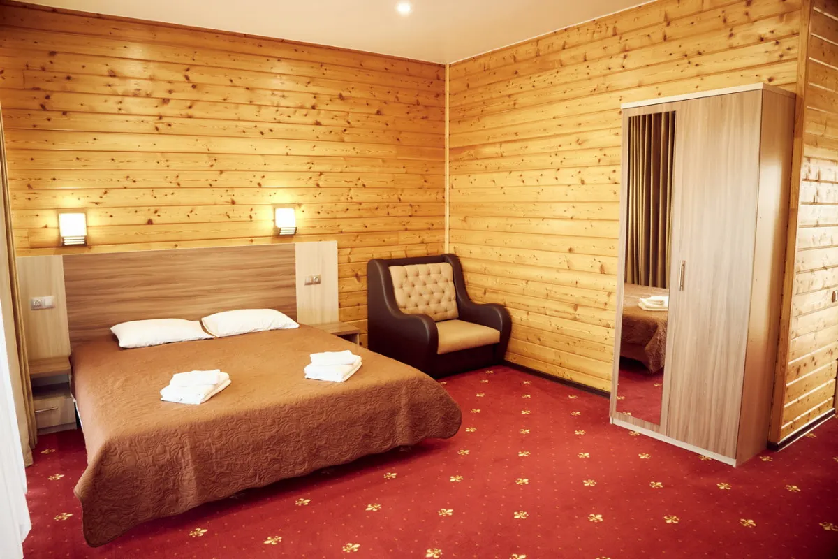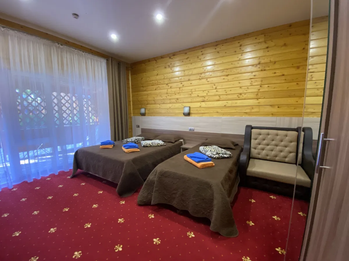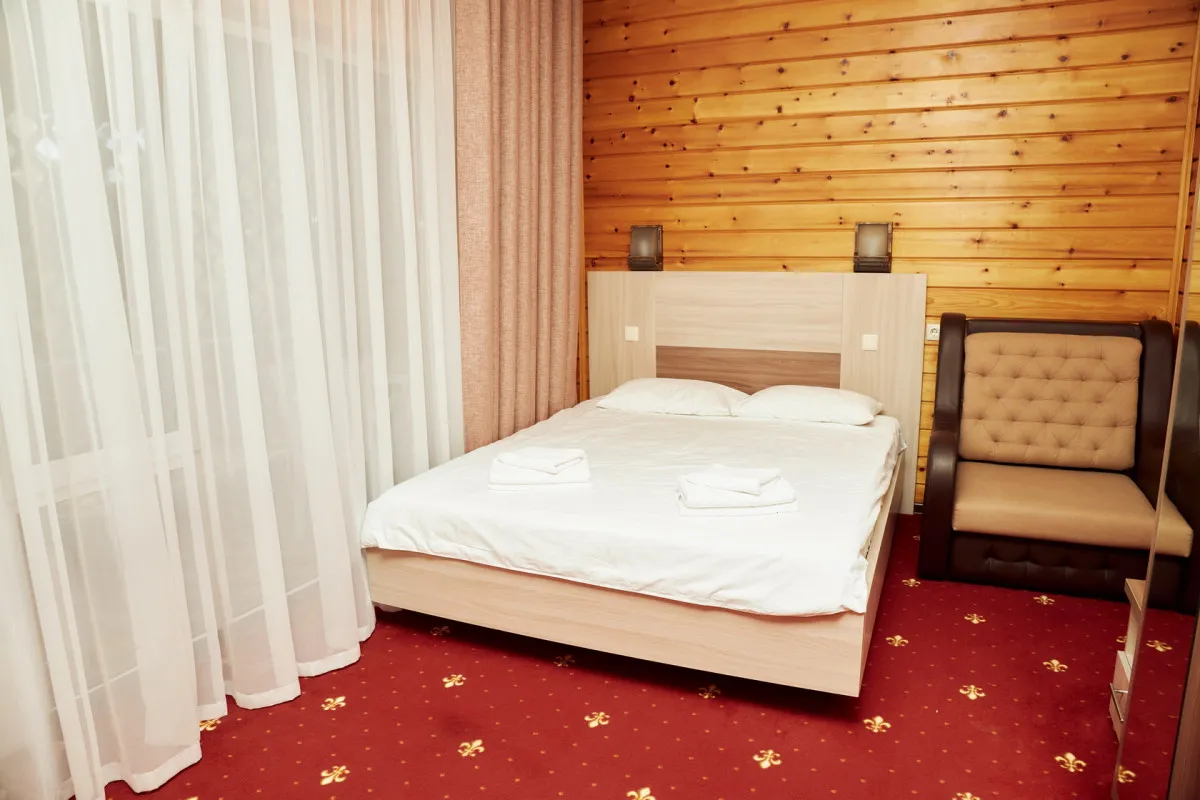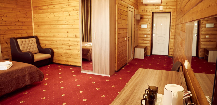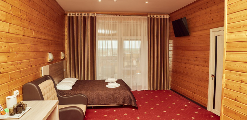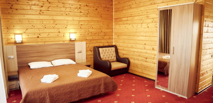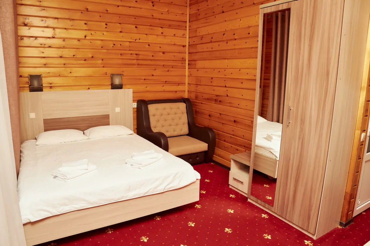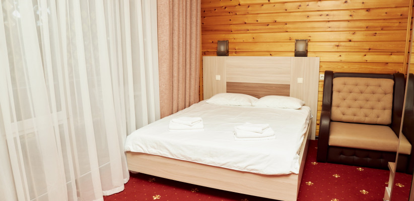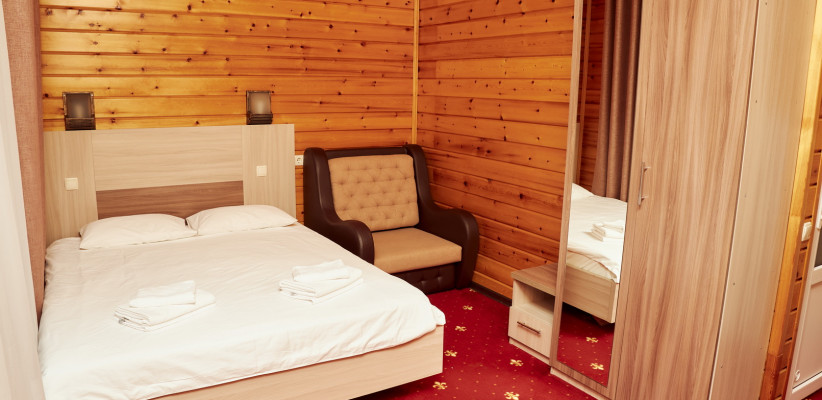 20-25 м2, спальня с двуспальной кроватью, кресло, обеденная зона. Максимальное количество гостей: 2 взрослых + 1 ребенок.Трехместный номер