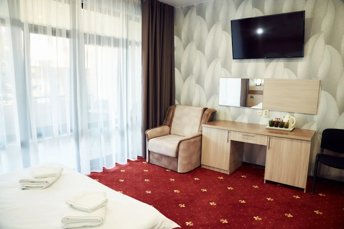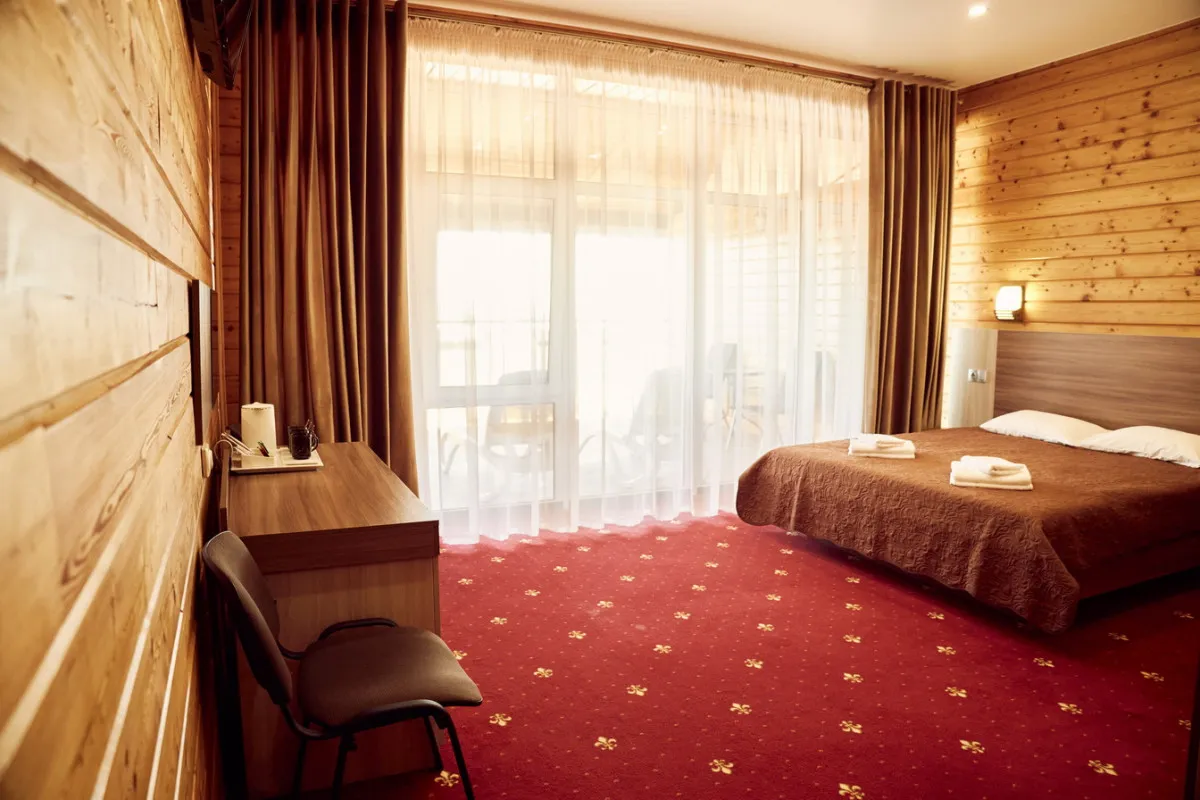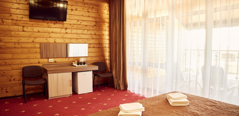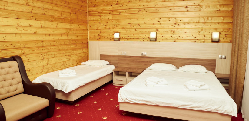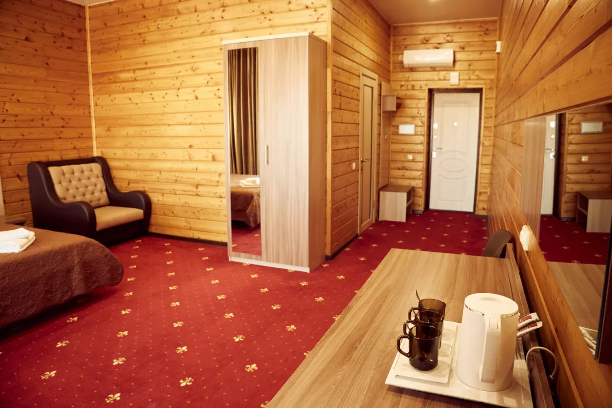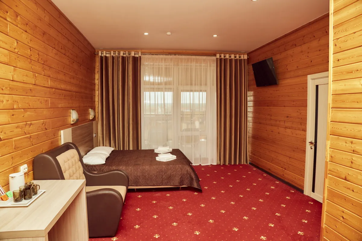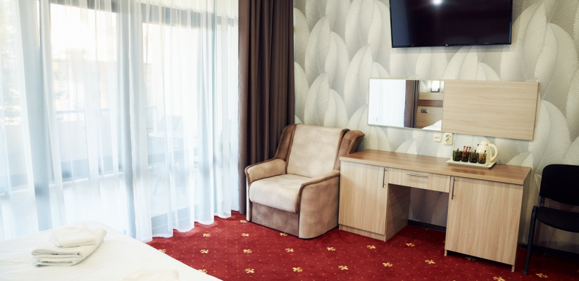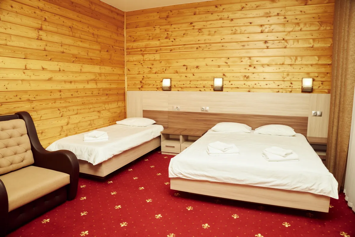 20-25 м2, спальня с двуспальной кроватью, кресло, обеденная зона. Максимальное количество гостей: 2 взрослых + 1 ребенок.Трехместный номер