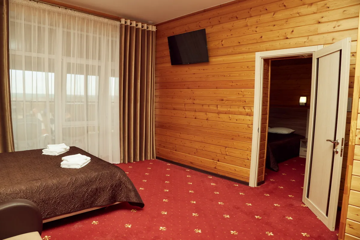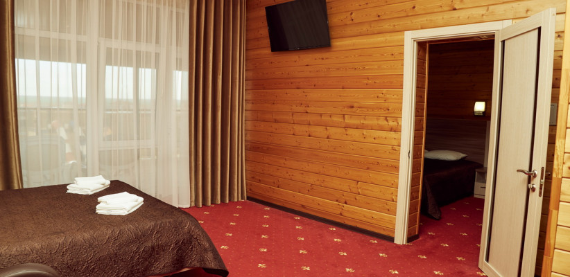 35 м2, спальня с двуспальной кроватью, кресло, обеденная зона. Максимальное количество гостей: 2 взрослых + 2 детей.Комфорт трехместный двухкомнатный номер