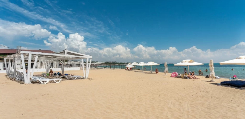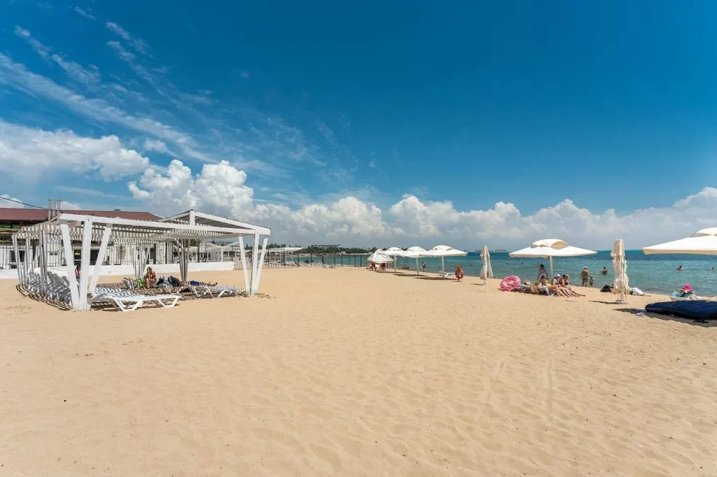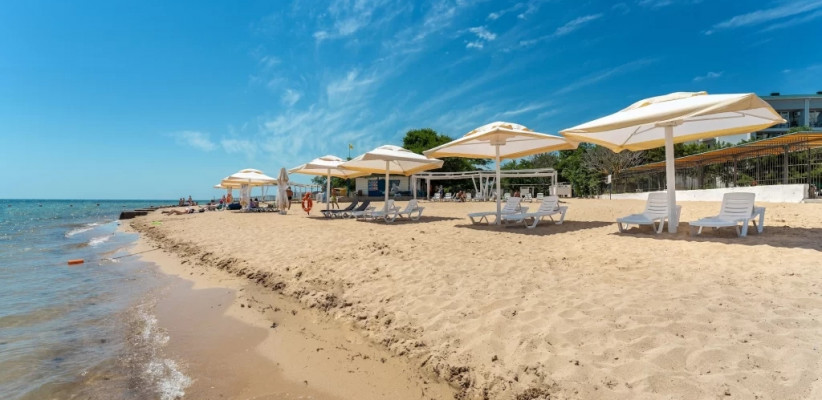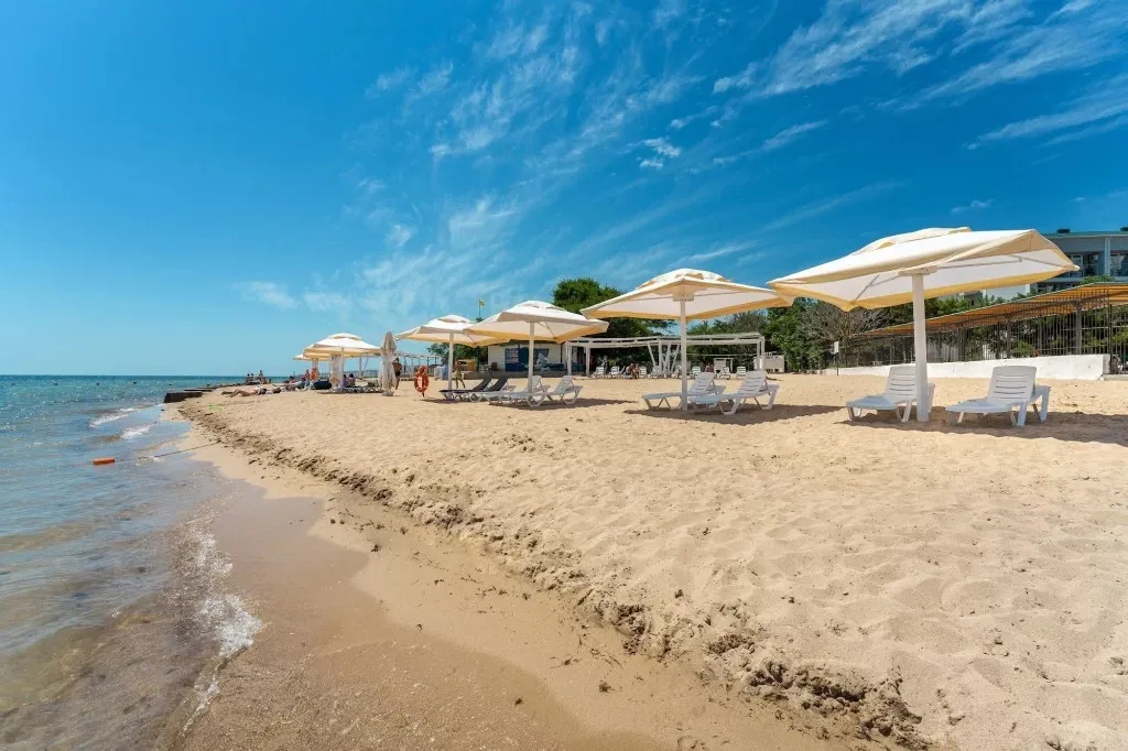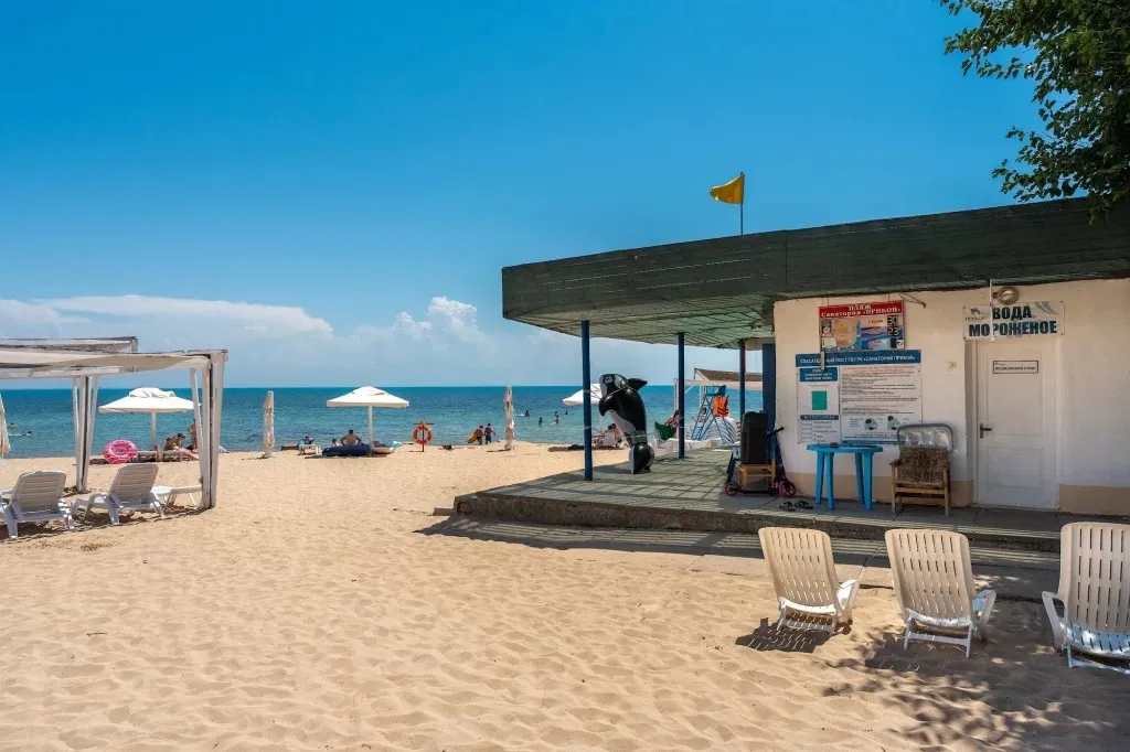 Собственный оборудованный песчаный пляж, в 300 метрах от санатория.