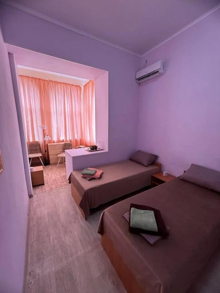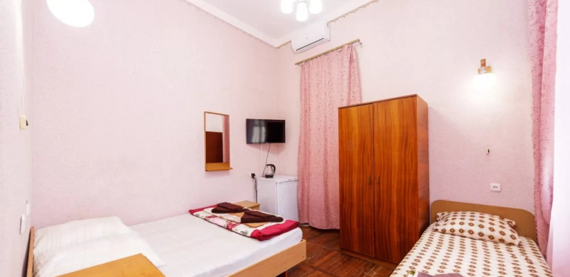 12 м2, две односпальные кровати. Общий санузел на блок. Балкон общий на два номера. Общий мини-холодильник на блок. Количество гостей: 2Эконом 3-местный 1-комнатный (Корпус №8)