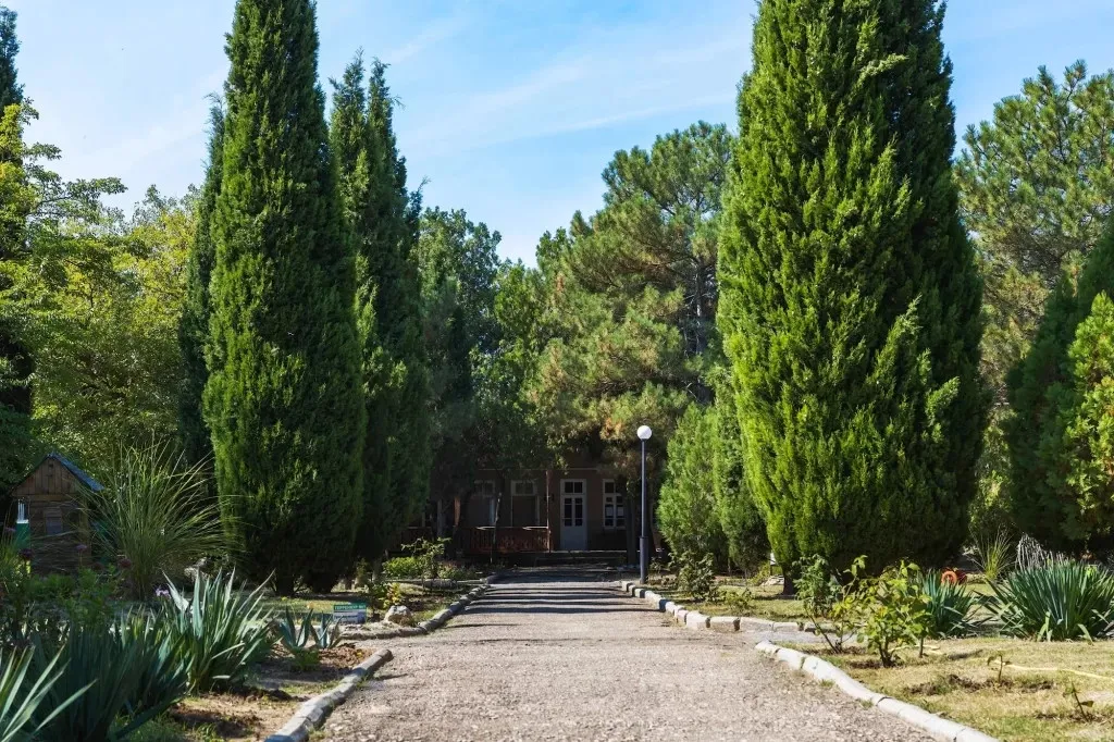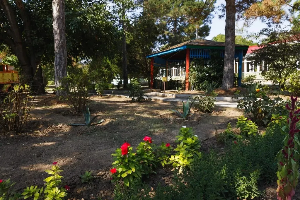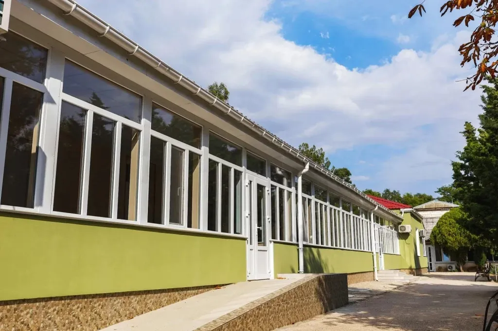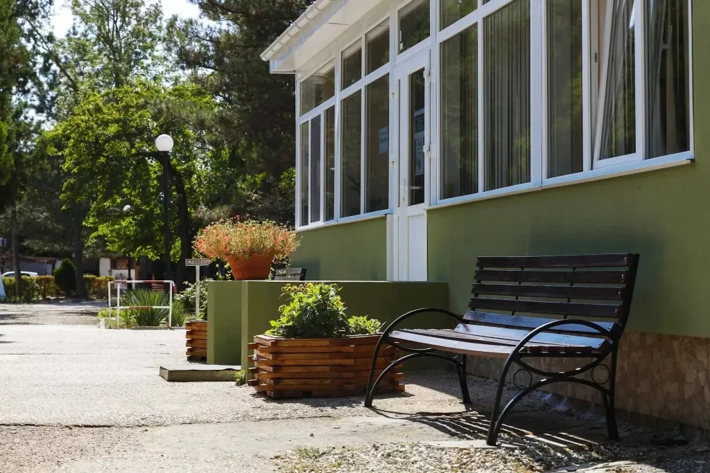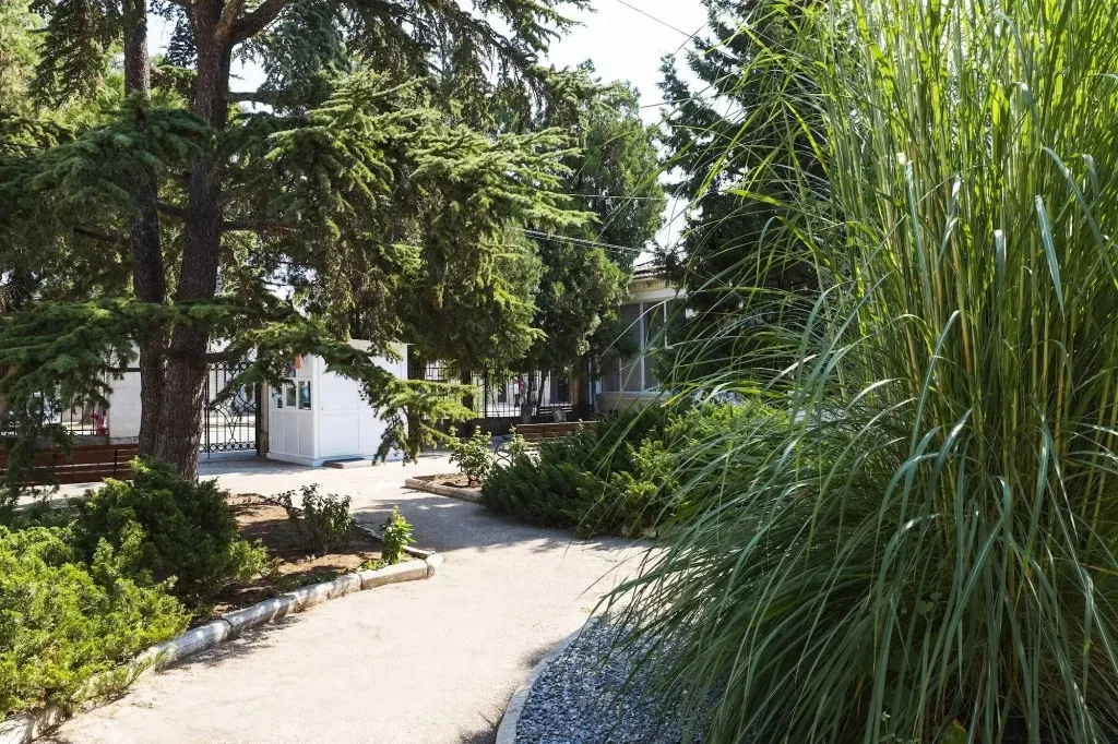 Здравница находится в центральной части города, рядом с парками, аквапарком, магазинами и остановками транспорта, что делает ее удобной как для спокойного лечения, так и для прогулок и развлечений. До железнодорожного вокзала – около 4 км, дорога до аэропорта Симферополя занимает примерно полтора часа.
