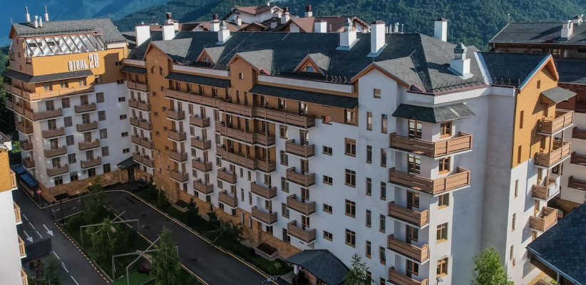 Отель 28 корпус 2 (ex. «Приют Панды») расположен в Горной Олимпийской деревне, в 800 метрах от подъемников курорта «Роза Хутор». Он находится на высоте около 1 100 метров над уровнем моря, что создает ощущение полного погружения в атмосферу гор. Здание окружено живописными склонами и хвойными лесами, наполняющими воздух свежестью и чистотой.