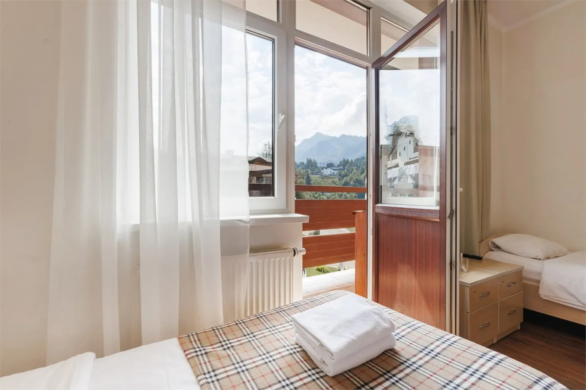 Поблизости – рестораны, кафе и прогулочные маршруты, позволяющие сочетать активный отдых с комфортом. Летом это отличная база для горных походов и отдыха на природе, а зимой – идеальное место для любителей катания и панорамных видов. Такое местоположение делает отель привлекательным круглый год: он сочетает уединенность гор с доступом ко всей инфраструктуре курорта.