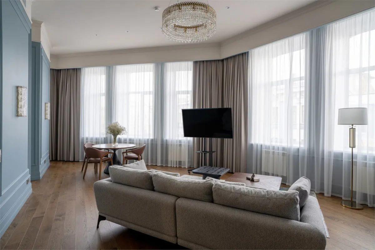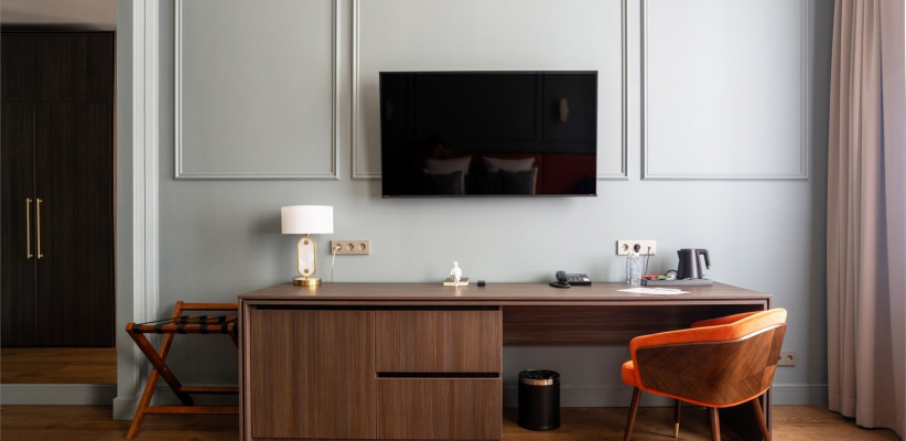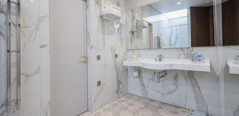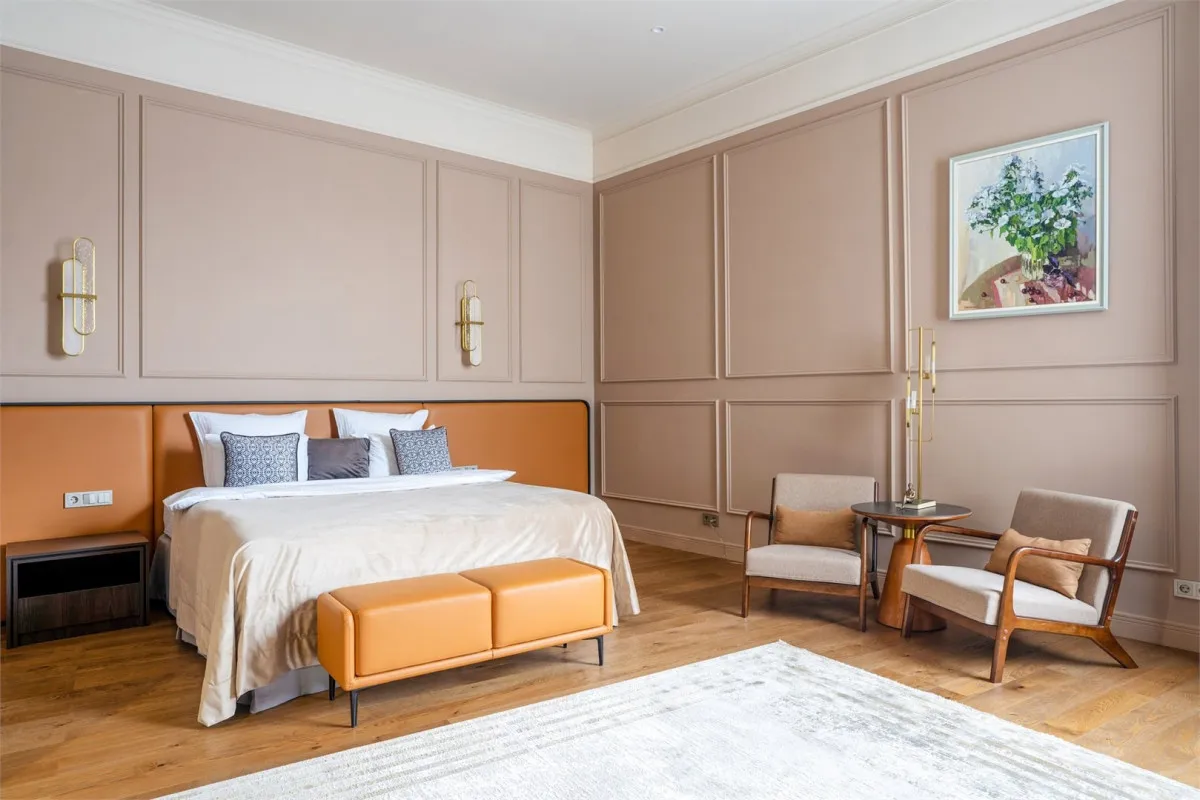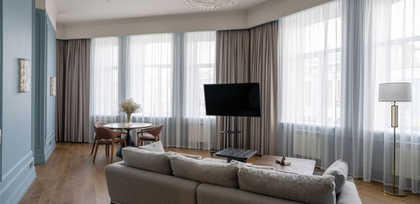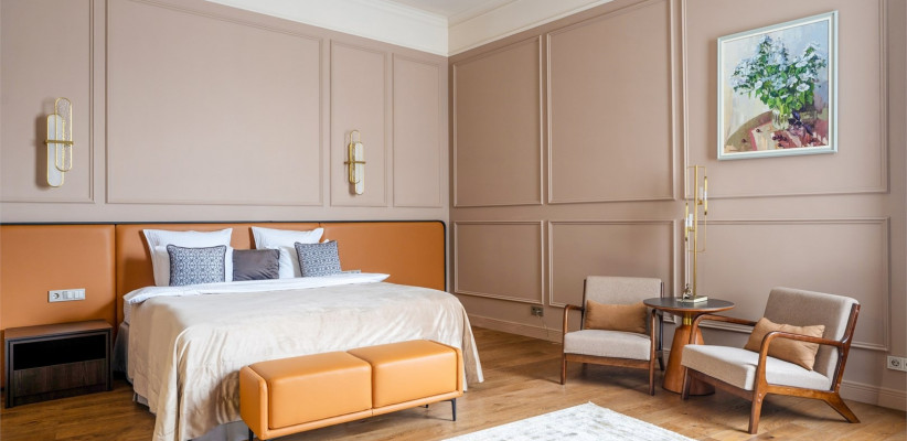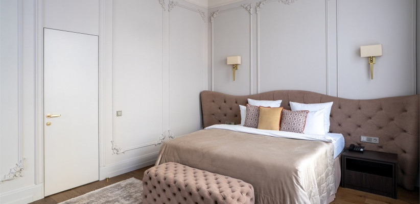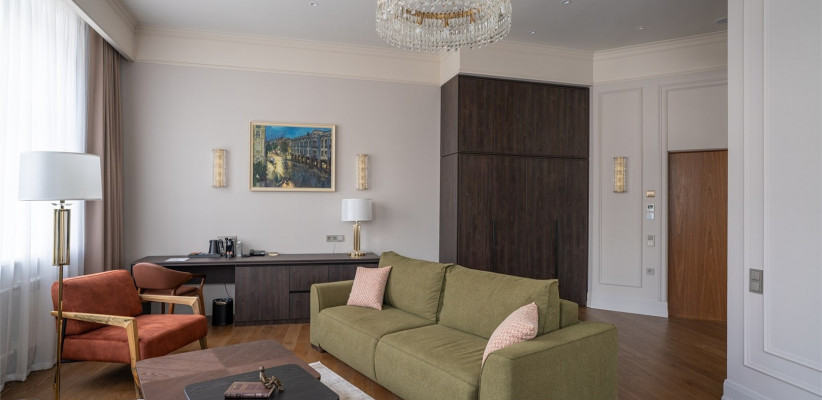 от 50 м2, двухкомнатный номер с видом на центральную улицу города. Двуспальная кровать или две односпальные. Количество гостей: 3Люкс (Президентский Люкс)