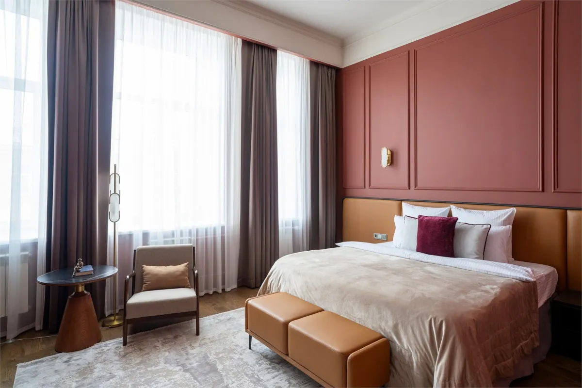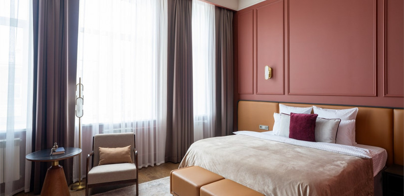 Концепция отеля строится на сочетании классической эстетики и современного комфорта. Пространство вдохновлено образом Александра Пушкина и объединяет утонченный стиль с технологичностью и высоким уровнем сервиса. Интерьеры, номера и общественные зоны создают гармоничную среду, где историческое наследие органично сочетается с требованиями современного ритма жизни.