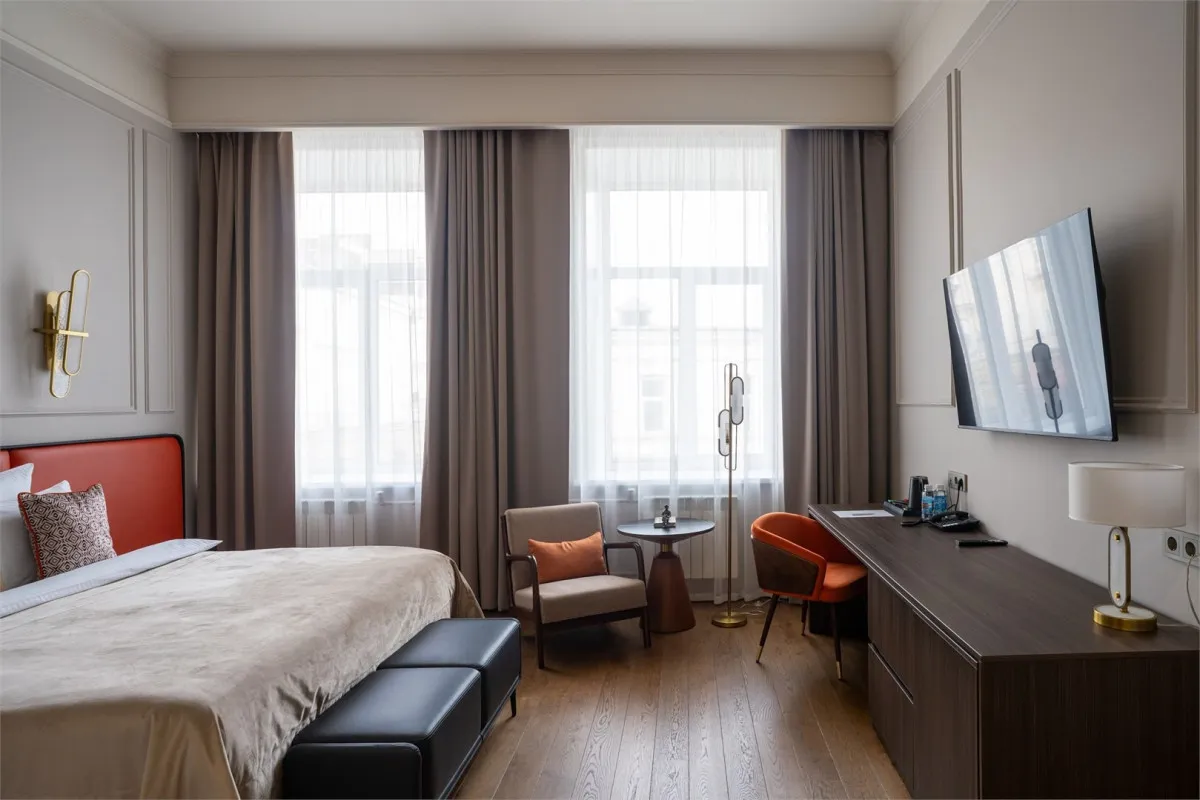от 24 м2, вид из окон номеров открывается на историческую часть города и на тихий внутренний дворик отеля. Двуспальная кровать или две односпальные. Количество гостей: 2Стандарт (Гранд Делюкс)