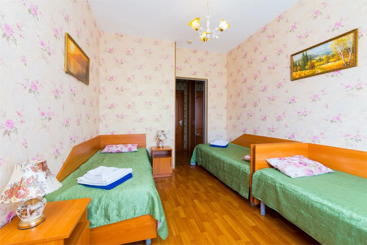 18 м2, три односпальные кровати, балкон. Количество гостей: 3Семейный 4-местный