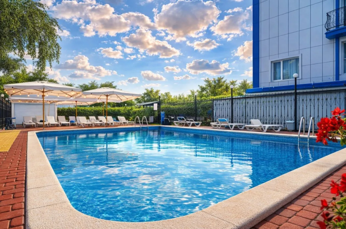 - открытый подогреваемый бассейн с 01.05.-15.10. (дата закрытия ориентировочная, зависит от погодных условий)