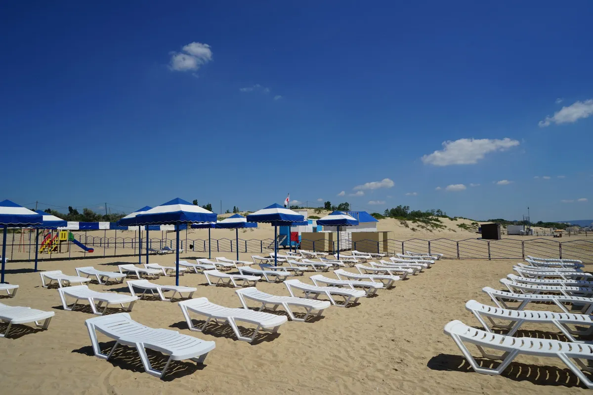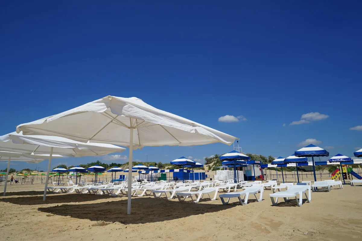 Собственный оборудованный песчаный пляж, в 250 метрах от санатория.