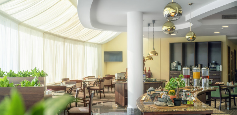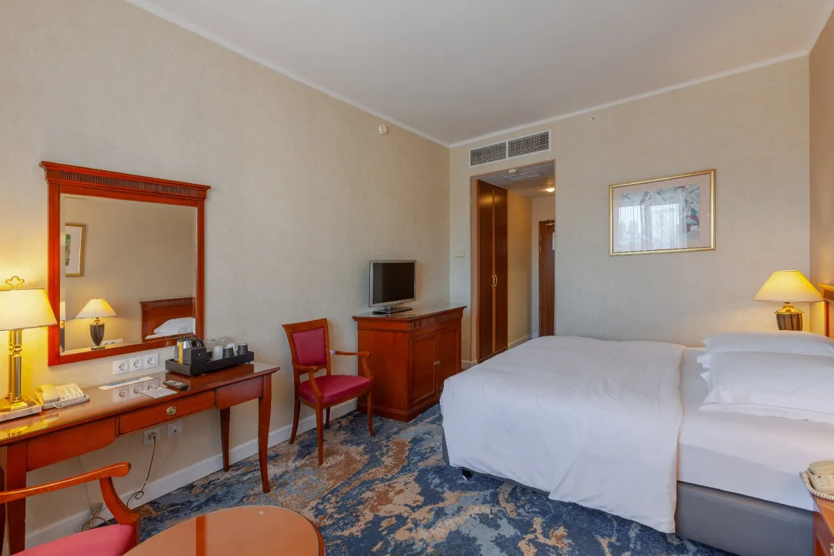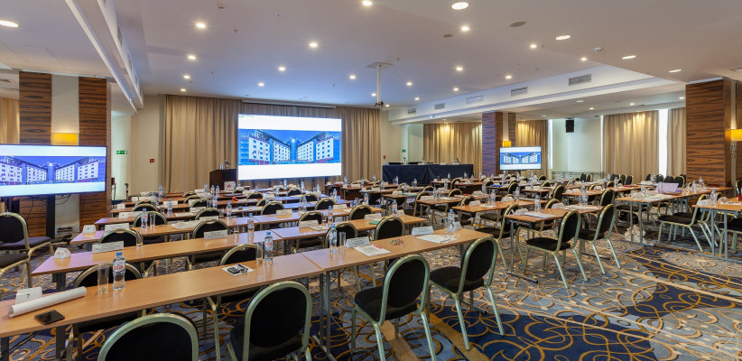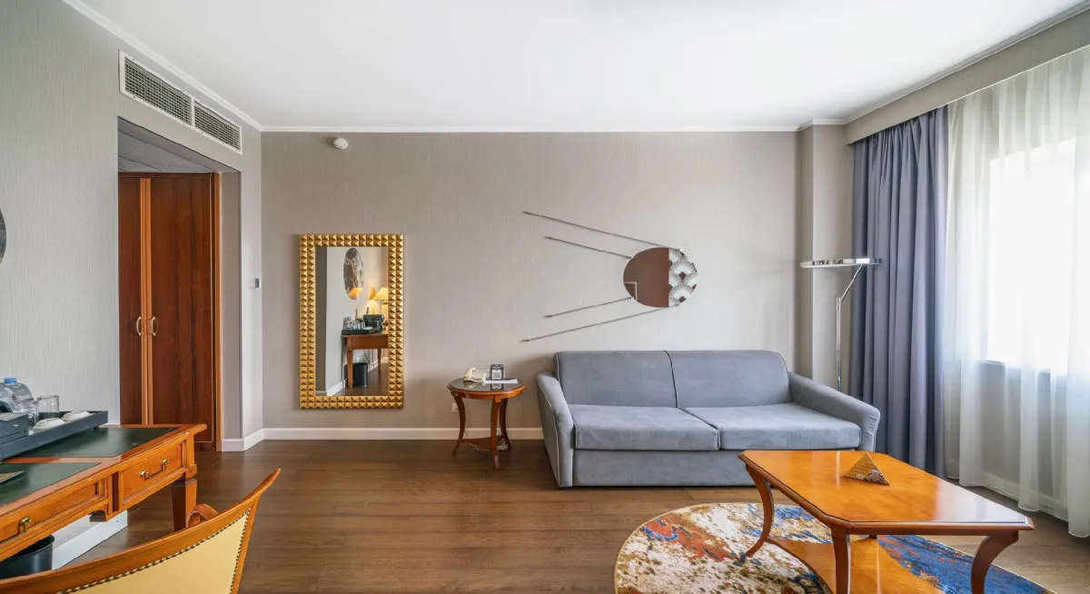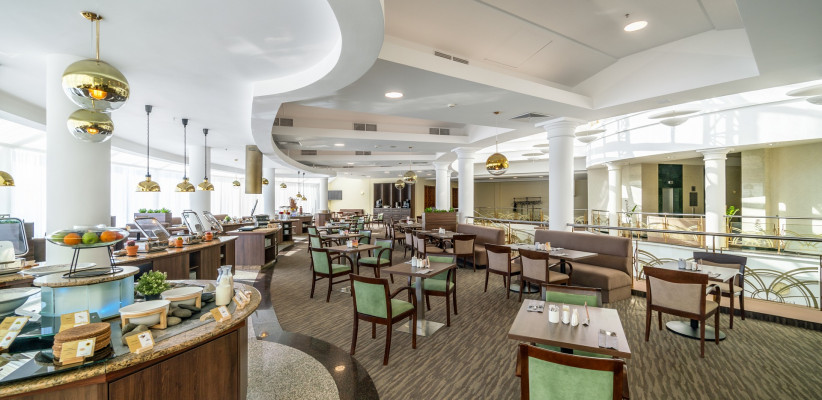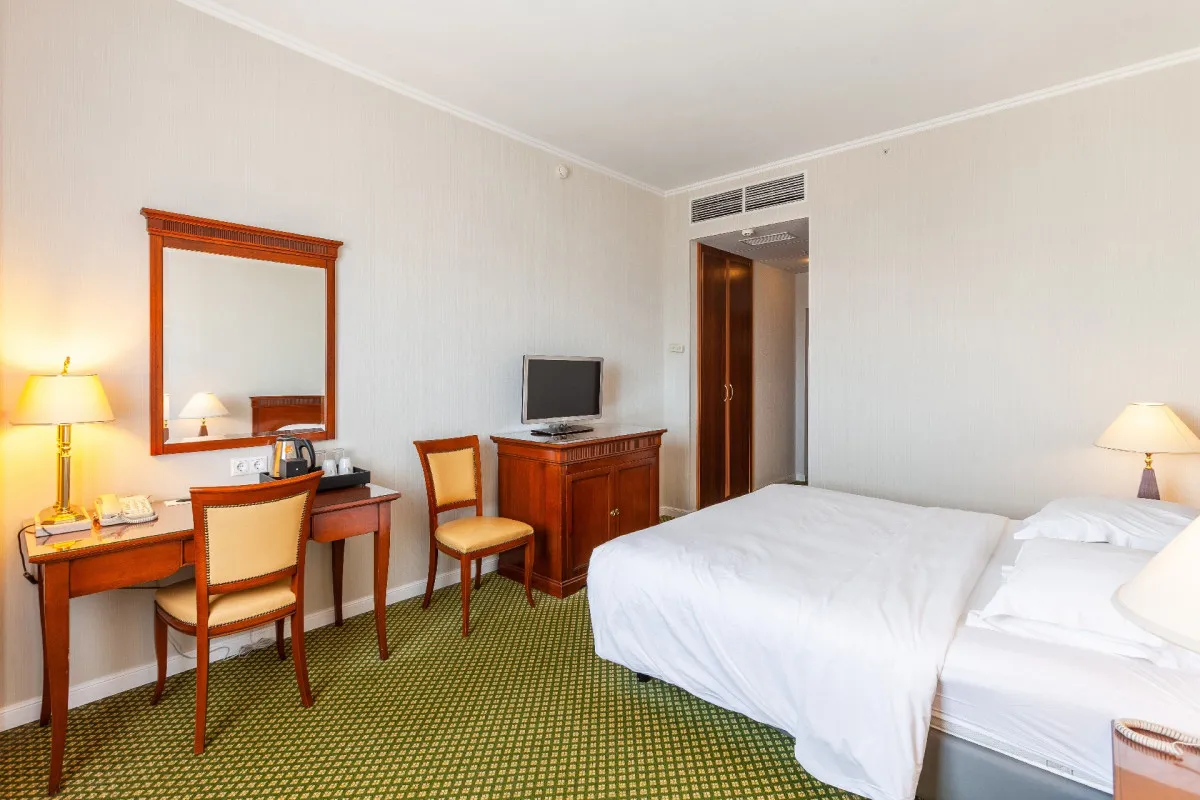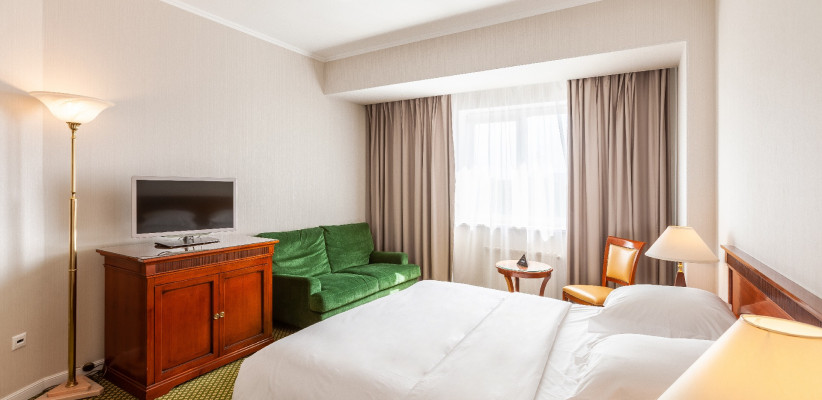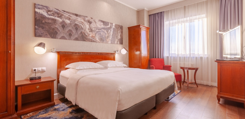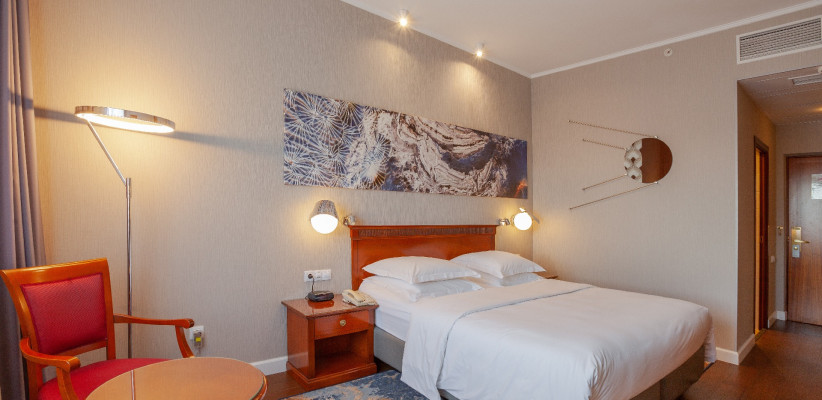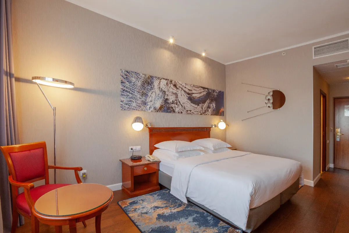 Отель располагает 184 номерами и развитой инфраструктурой для проведения мероприятий. На территории работают рестораны, представительский лаундж, спа-зона с бассейном и фитнес-центром. Благодаря удобному расположению гостиница подходит как для туристов, так и для деловых путешественников.