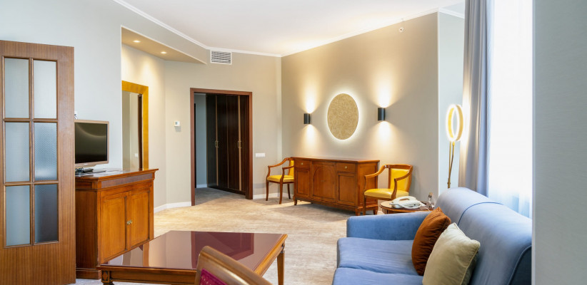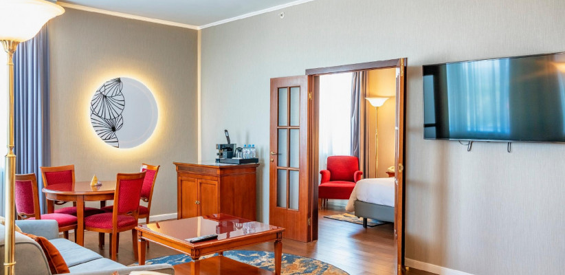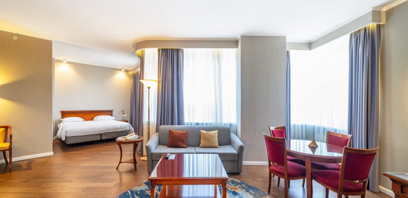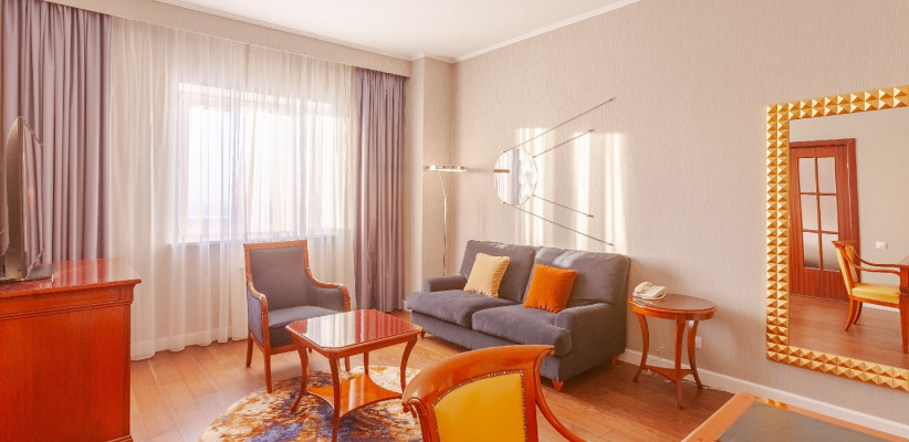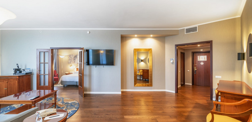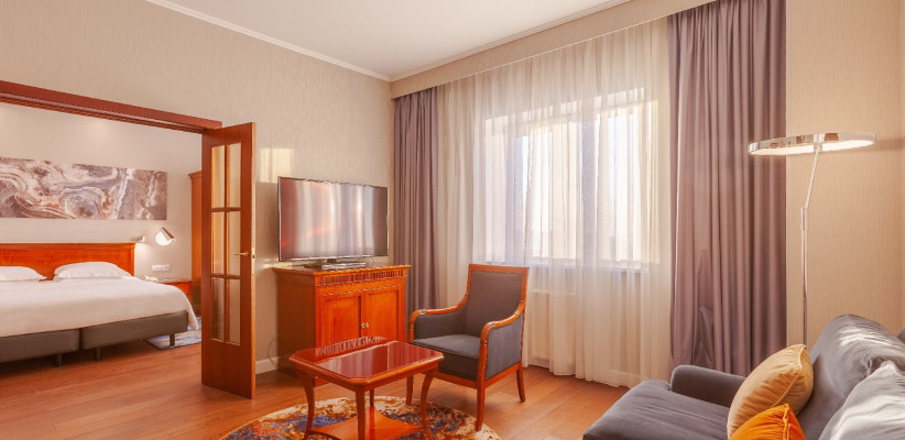40 м2, с видом на город; спальня и зона отдыха, двуспальная кровать. Количество гостей: 3Представительский номер