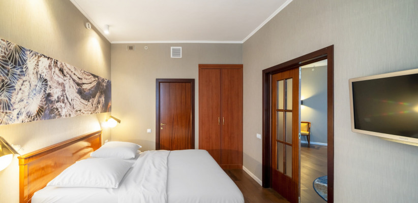106 м2, несколько комнат, гостиная и столовая, двуспальные кровати. Количество гостей: 4Семейный люкс