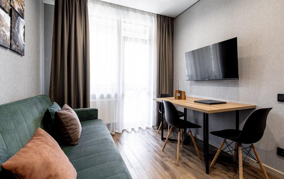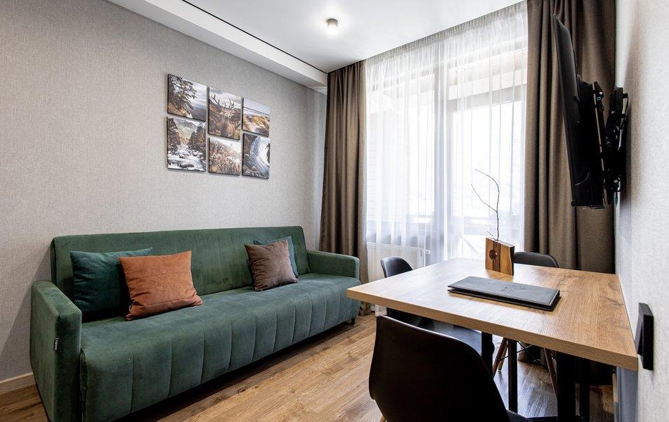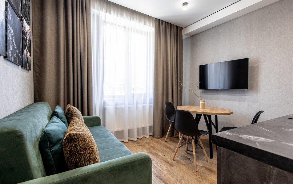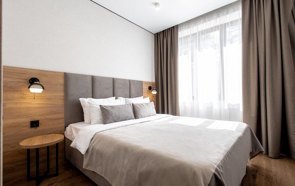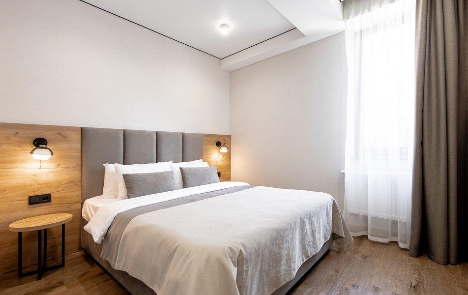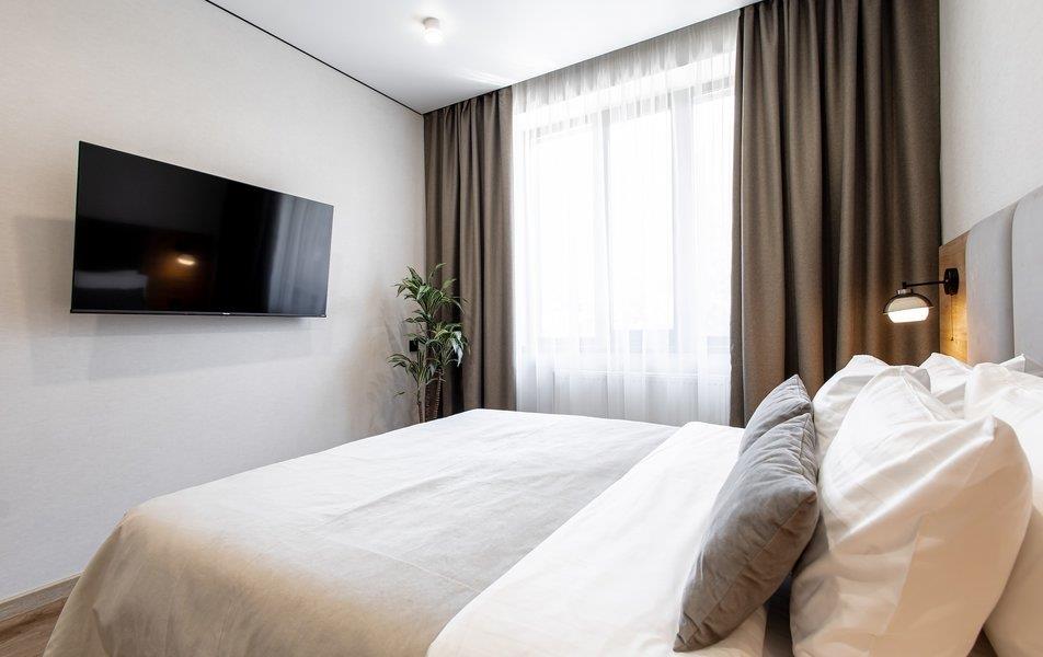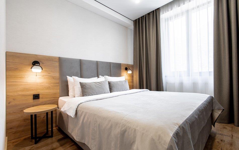 При заселении взимается возвратный депозит в размере 3 000 рублей Апарт-отель «Регул» расположен в Красной Поляне, недалеко от Краеведческого музея. В округе много ресторанов и кафе, где можно перекусить. Во время отдыха в Красной Поляне обязательно последует посетить одноименный горный курорт, аквапарк Mountain Beach и парк «Времена года». Расстояние до международного аэропорта Сочи имени В. И. Севастьянова составляет примерно 41 километр, а до железнодорожной станции Роза Хутор – около 6 километров. Гости по достоинству оценят номера в стиле минимализма, оснащенные всем необходимым для комфортного отдыха. Удобная мебель, отдельная ванная комната, наборы постельного белья и полотенец, быстрый Wi-Fi – это лишь часть предоставляемых услуг. Кухня, оборудованная современными приборами и посудой, станет прекрасным местом для приготовления кулинарных изысков. Для комфорта гостей на территории имеется лыжная комната со специальной сушилкой. Предоставляется парковка с видеонаблюдением. По всей территории апарт-отеля обеспечен устойчивый сигнал Wi-Fi. Круглосуточная стойка регистрации предлагает услуги сканирования, копирования, распечатки документов, а также помощь в бронировании авиабилетов, железнодорожных билетов и билетов на экскурсии и мероприятия. По запросу для детей предоставляются ванночки и горшки. Без питания – Завтрак континентальный Парковка: парковка возле корпуса Аренда Интернет: wi-fi в номерах, wi-fi на территории Сушка лыжного оборудования Прокат: ванночка: по запросу, детские горшки: по запросу, детские кроватки: по запросу Как добраться: Самолетом до аэропорта Адлер (г. Сочи), далее на автобусе №105,105с,535 в направлении: «Роза Хутор» до остановки «Вертодром», далее 460 м до апартаментов. Поездом до ж/д вокзала Адлер, далее на автобусе №105,105с в направлении: «Роза Хутор» до остановки «Вертодром», далее 460 м до апартаментов. Рекомендуем заказывать трансфер.