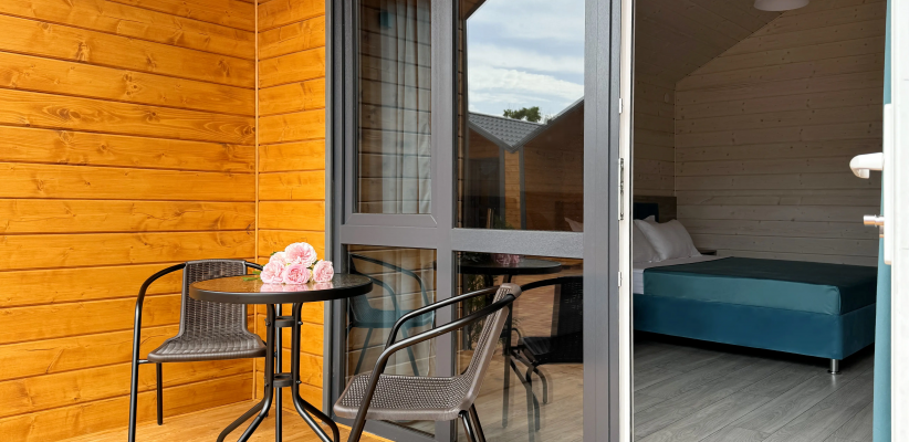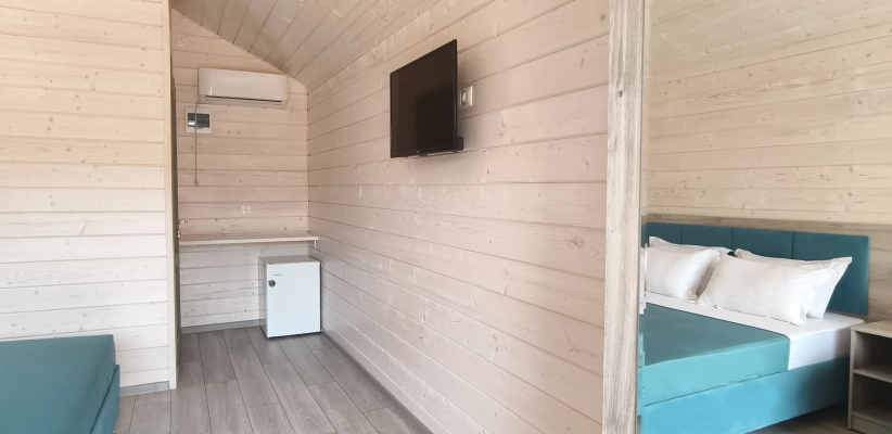 24 м2, веранда, двуспальная кровать, односпальный диван. Количество гостей: макс. 3Домик 4-местный