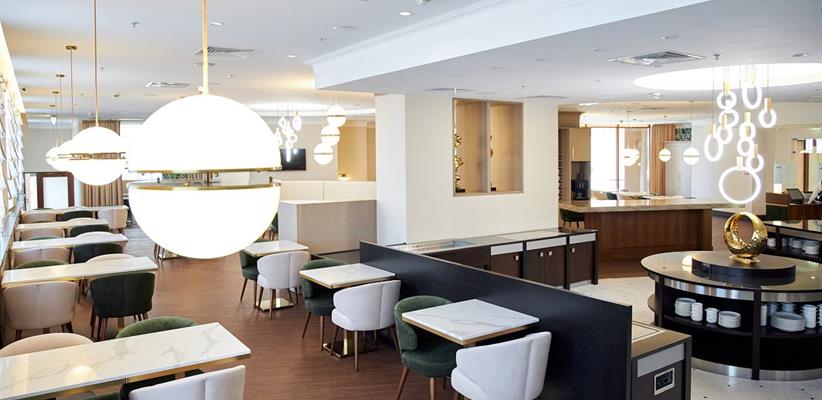 На территории отеля работают ресторан русской и итальянской кухни и лобби-бар. Завтрак сервируется по системе «шведский стол».