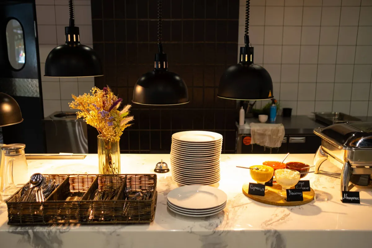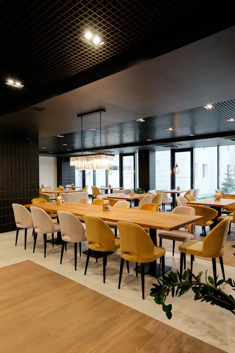 - ресторан предлагает питание по системе «шведский стол», а также обслуживание по меню а ла карте с богатой винной картой