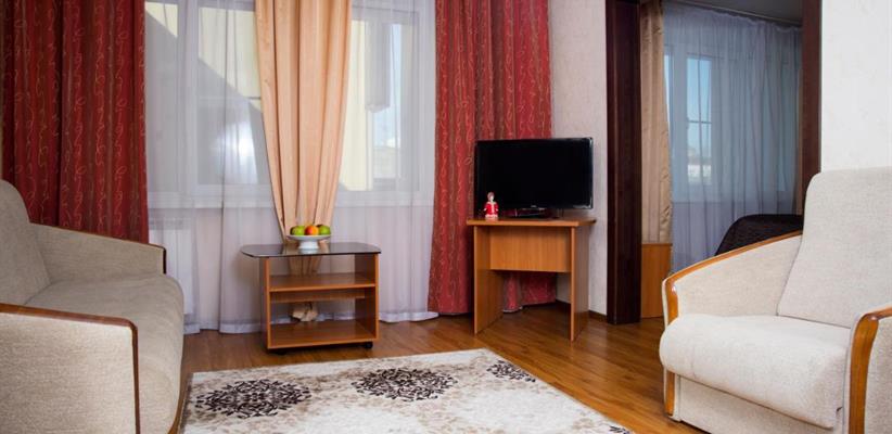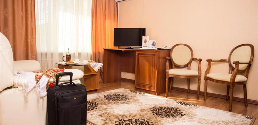 Комфорт двухместный: двухкомнатыйй номер площадью 30 кв. м, максимальное размещение 2 чел. Номер оборудован 2 односпальными кроватями или 1 двуспальной.