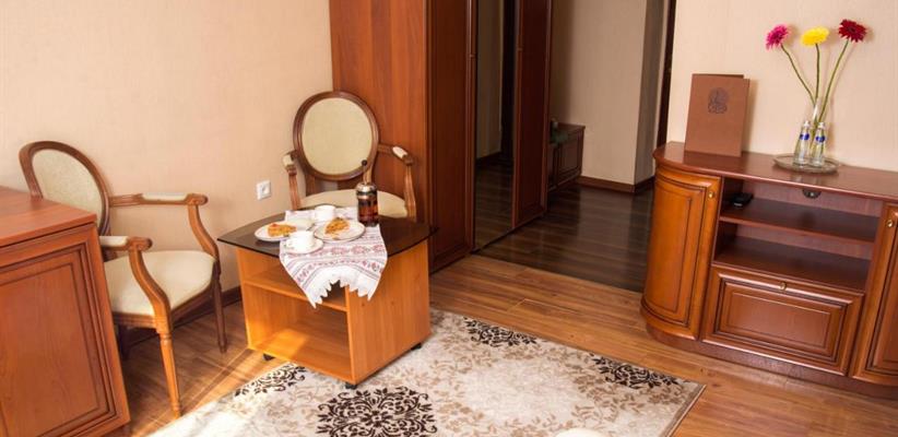Делюкс двухместный: двухкомнатыйй номер площадью 35 кв. м, максимальное размещение 2 чел. В номере установлена двуспальная кровать.