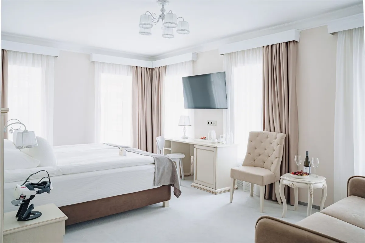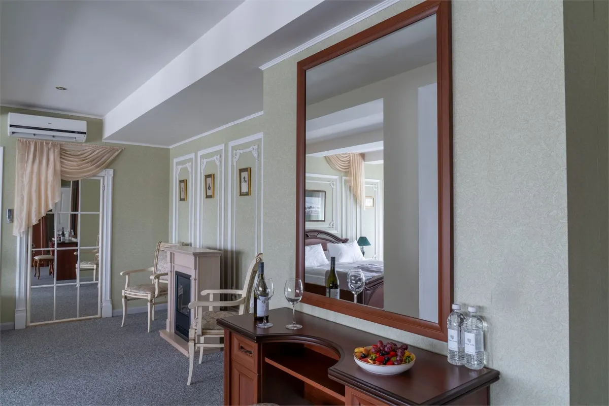 50–60 м2, панорамный вид на окрестности, отдельная спальня, гостиная, джакузи, количество гостей: 2-4Полулюкс