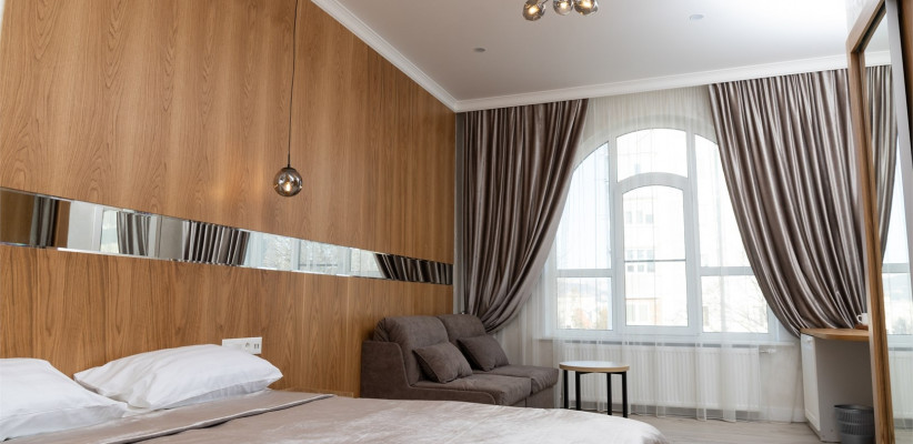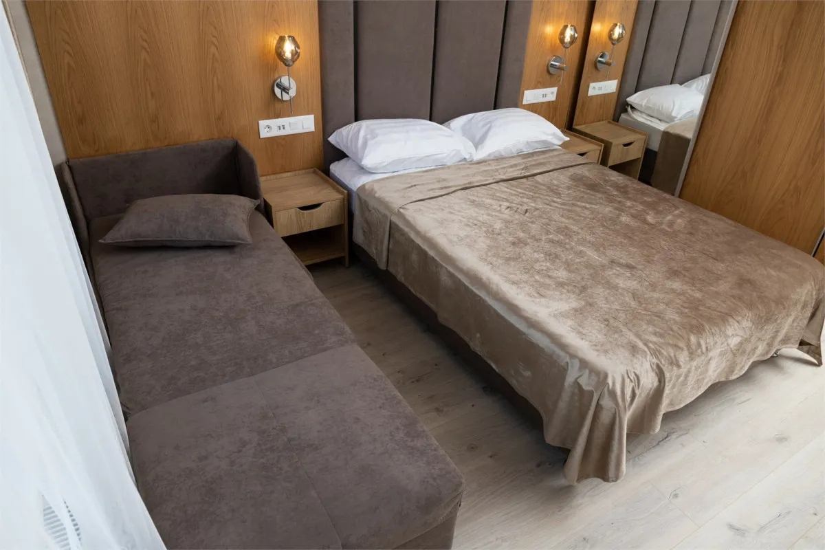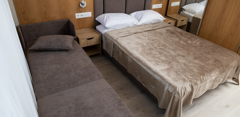 22 м2, двуспальная кровать, кресло-кровать. Количество гостей: 3