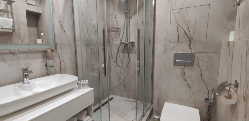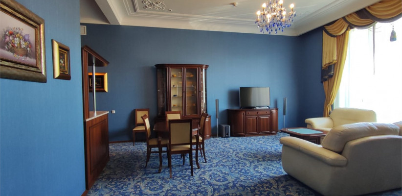 60 м2, двуспальная кровать, отдельная гостиная с диваном, гардеробная, вид на город. Количество гостей: 4Апартамент