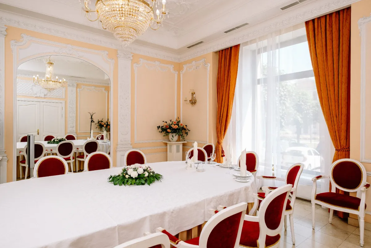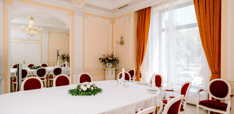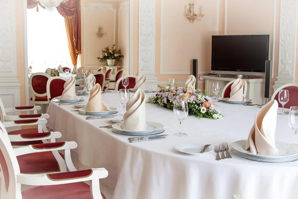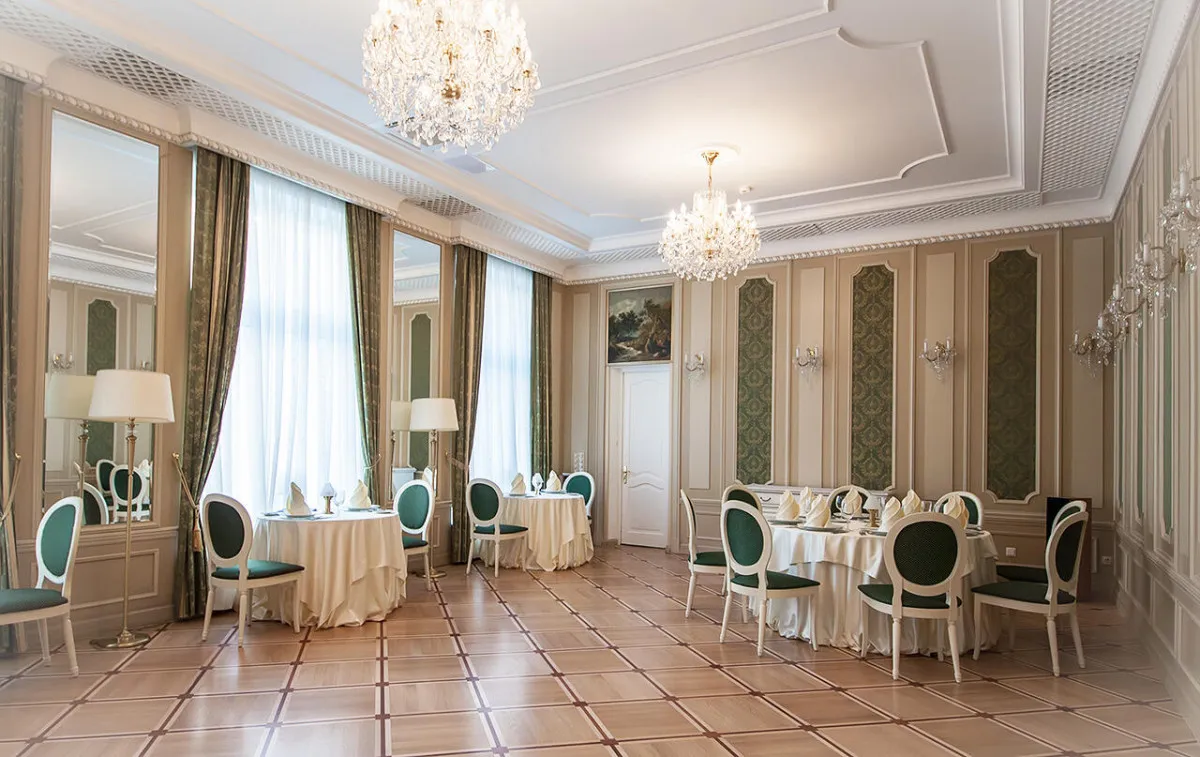 Ресторанный комплекс включает три зала и предоставляет услуги банкетного обслуживания, кейтеринга, организации мероприятий, а также изготовление тортов на заказ от шеф-кондитера.