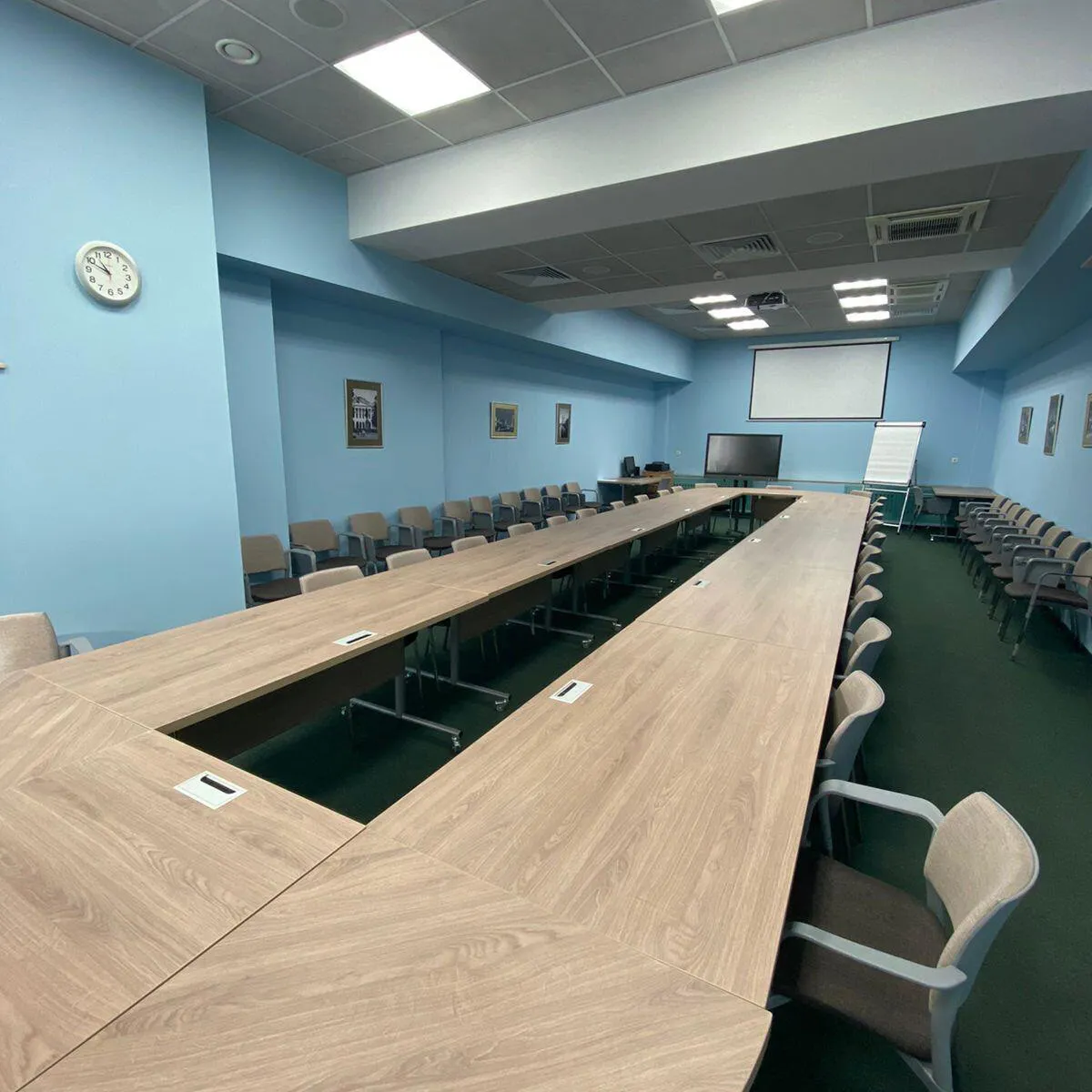 Для проведения деловых встреч предусмотрен современный конференц-зал вместимостью до пятидесяти человек. Помещение оснащено необходимым оборудованием и подходит для проведения конференций, презентаций, семинаров, тренингов, переговоров и других деловых мероприятий.