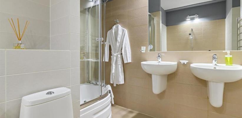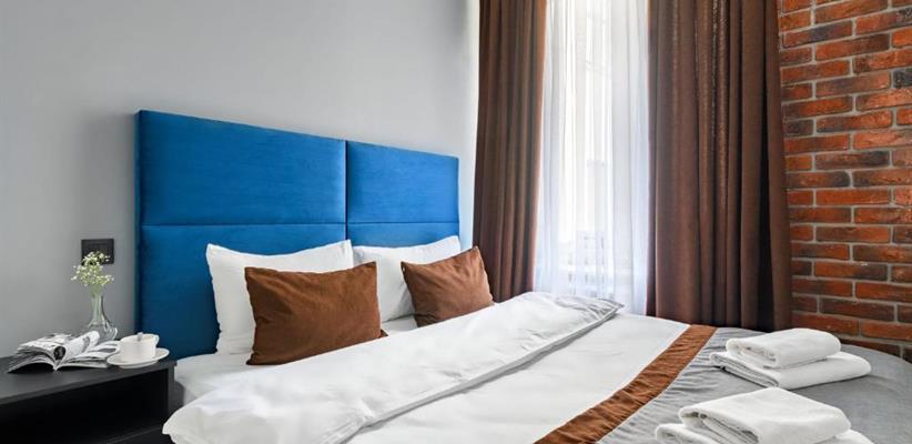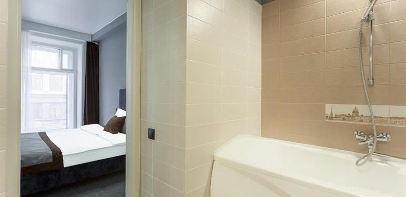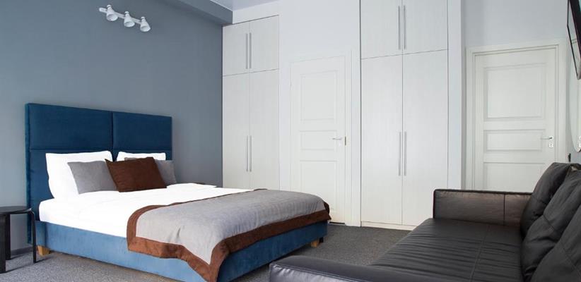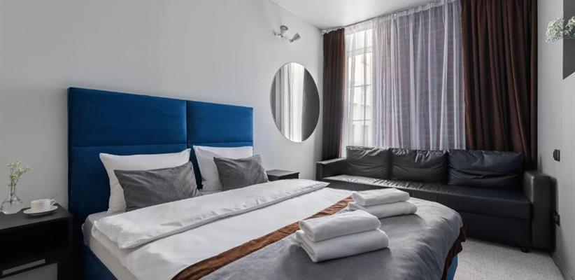 Улучшенный номер – 17 кв. м, максимальное размещение 3 человека. В номере есть двуспальный диван-кровать, кухня с чайником, холодильником, микроволновой печью, мультиваркой, санузел с душем и ванной, шкаф для хранения вещей, сейф.