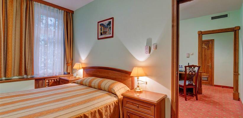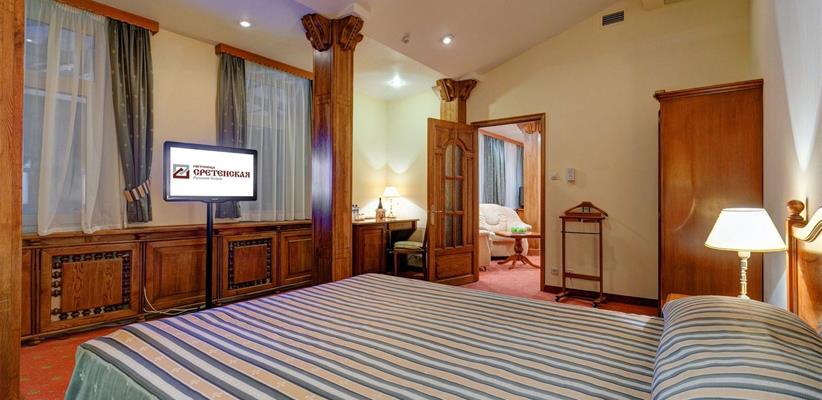 Люкс. Площадь номера 45 кв. м. Номер двухкомнатный. В номере двуспальная кровать, выделенная зона отдыха, диван, телевизор, телефон, мини-бар, чайный набор, бесплатный Wi-Fi, персональный электронный консьерж 24/7. Санузел с душем, фен. Предоставляются халаты и тапочки. Максимальное размещение 4 человека.