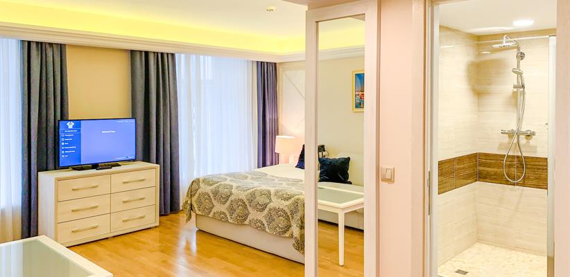 Номерной фонд состоит из 88 номеров. Все номера оснащены регулируемым отоплением и кондиционированием, светонепроницаемыми шторами и ортопедическими матрасами, есть Wi-Fi, душ, телевизор, телефон, холодильник, фен, чайник, сейф, предоставляются туалетно-косметические принадлежности.