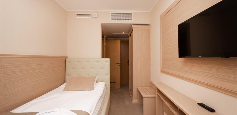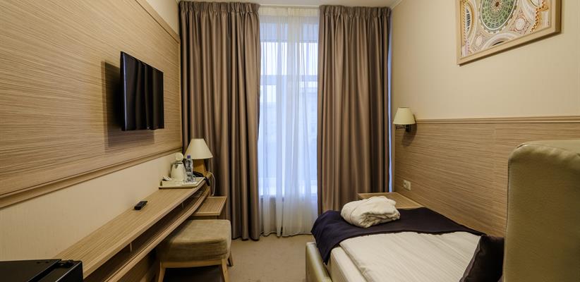 Одноместный эконом. Площадь – 14 кв. м. В номере есть диван-кровать. Рассчитан на 1 человека. Вид на город.