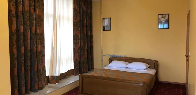 Двухкомнатный номер – максимальное размещение 4 человека, 1 двуспальная кровать или 2 односпальные кровати. Вид из окон – на город. Мебель – вешалки, диван, журнальный столик, зеркало, стол, стулья, тумбы, шкаф для одежды.