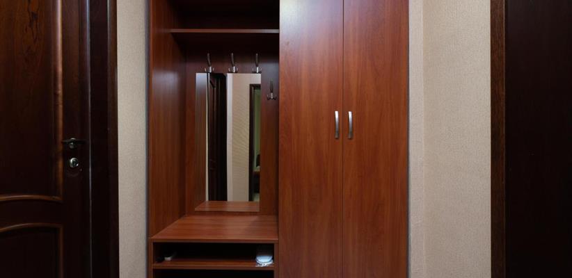 Двухместный номер – максимальное размещение 2 человека, 2 односпальные кровати. Мебель – вешалки, диван, стол, стулья, тумбы, шкаф для одежды.