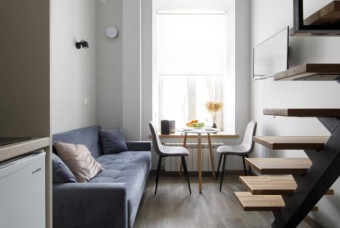 Делюкс мансарда с двуспальной кроватью – номер площадью 23 кв. м., максимальное размещение 2 взрослых, в спальне одна двуспальная.
