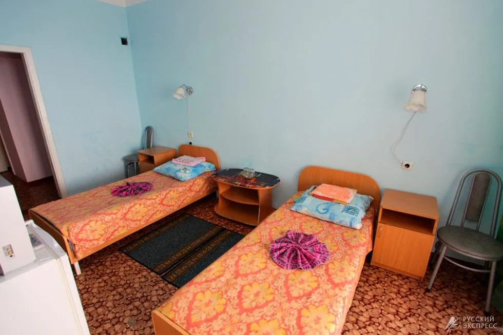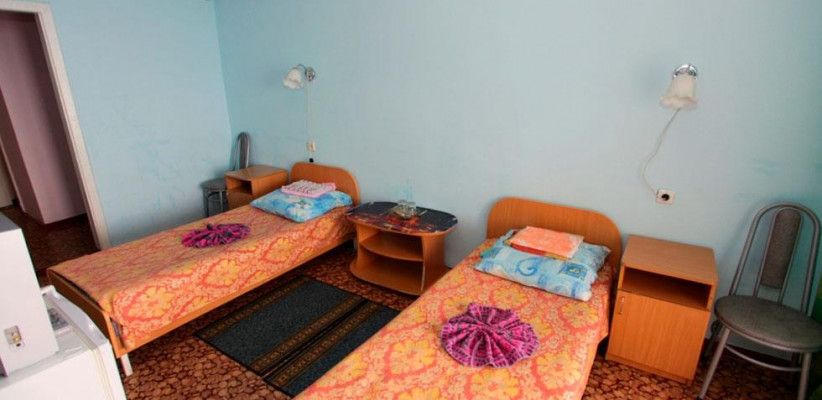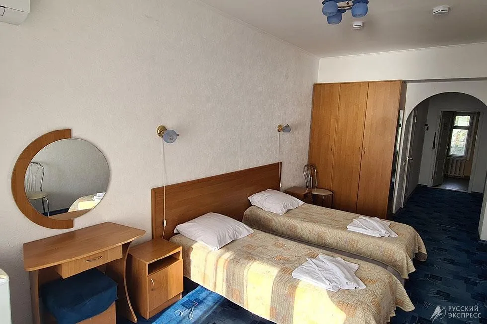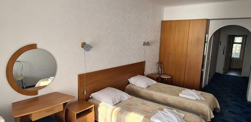 - 2-местный улучшенный (28 кв. м, расположение: на всех этажах, размещение: 2 чел. + 1 доп. место − кровать) − 1-комнатный 2-местный с удобствами с обновлённым ремонтом. В номере две односпальные кровати, прикроватные тумбы, стол, стул, шкаф, комод, телевизор, холодильник. Санузел оснащен душевой кабиной, умывальником. В каждом номере есть выход на балкон. Южные номера с видом на море, северные номера с видом на горы