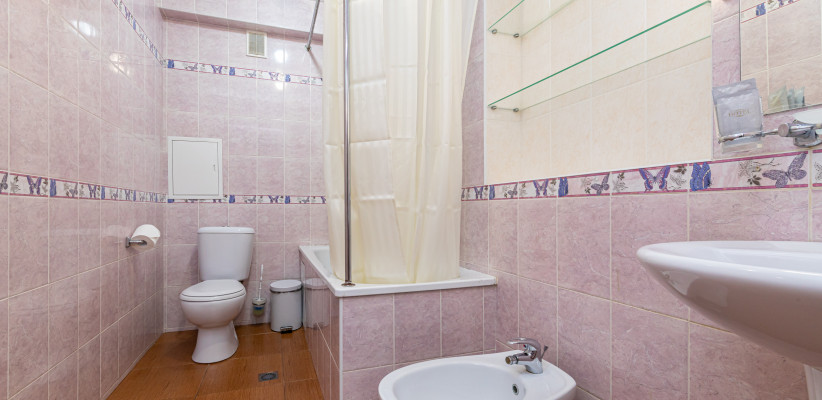 27 м2, с видом на город/ горы. В номере одна большая двуспальная кровать, в туалете – биде. Дополнительные места: раскладной диван