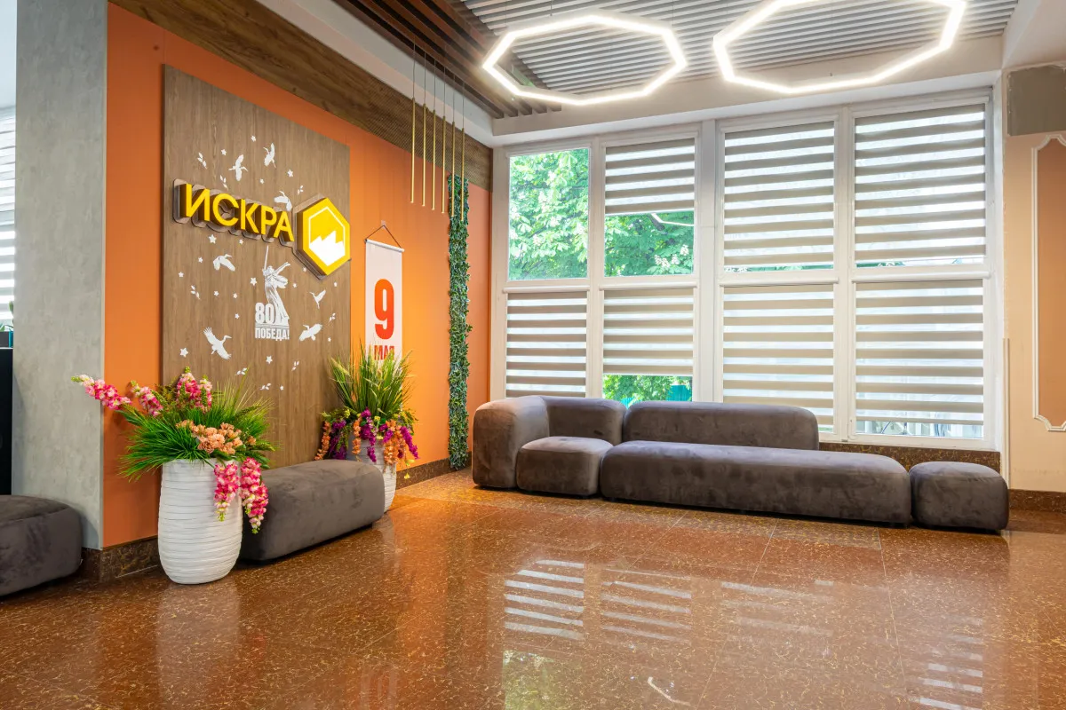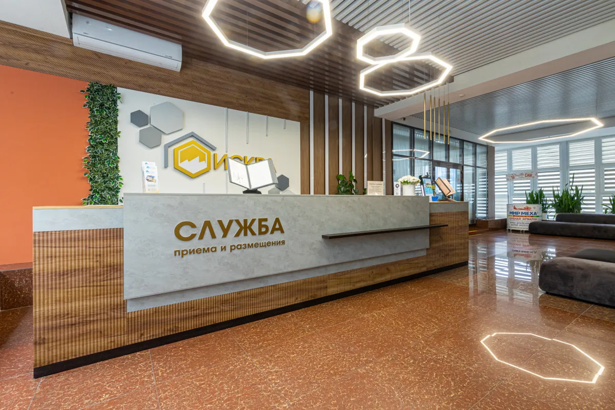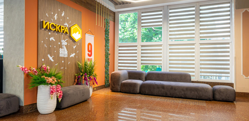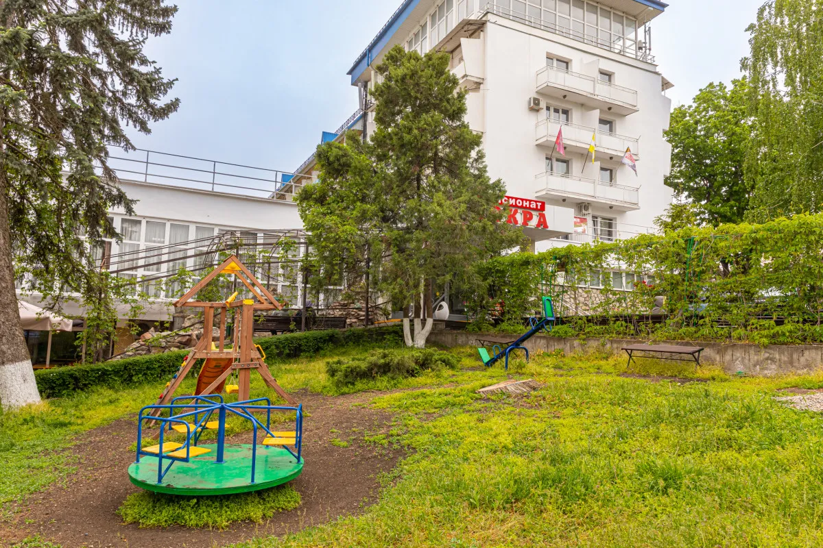 Пансионат «Искра» представляет собой пятиэтажное здание, оборудованное лифтом. Основная часть лечения происходит в самом пансионате, однако на ряд процедур приглашают в поликлинику им. Н. И. Пирогова в 6-10 минутах пешком.