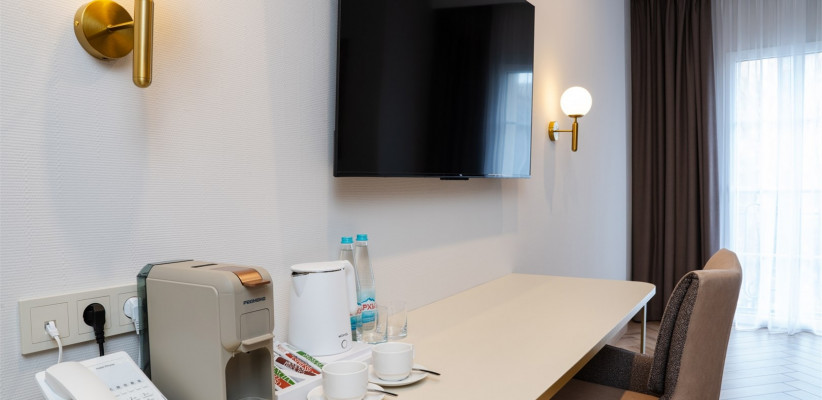- кофемашина (в номерах «Джуниор сюит» и «Люкс»)
