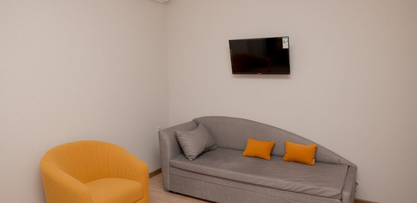 двуспальная кровать или две односпальные кровати, диван-кровать, кресло-кровати. Количество гостей: 6Семейный 8-местный 2-комнатный