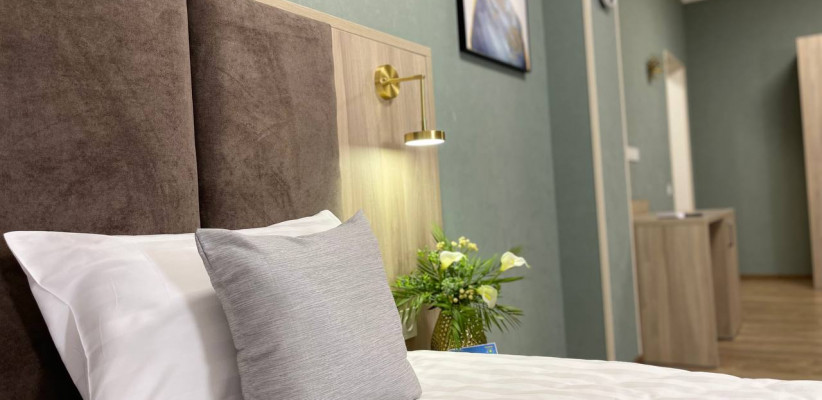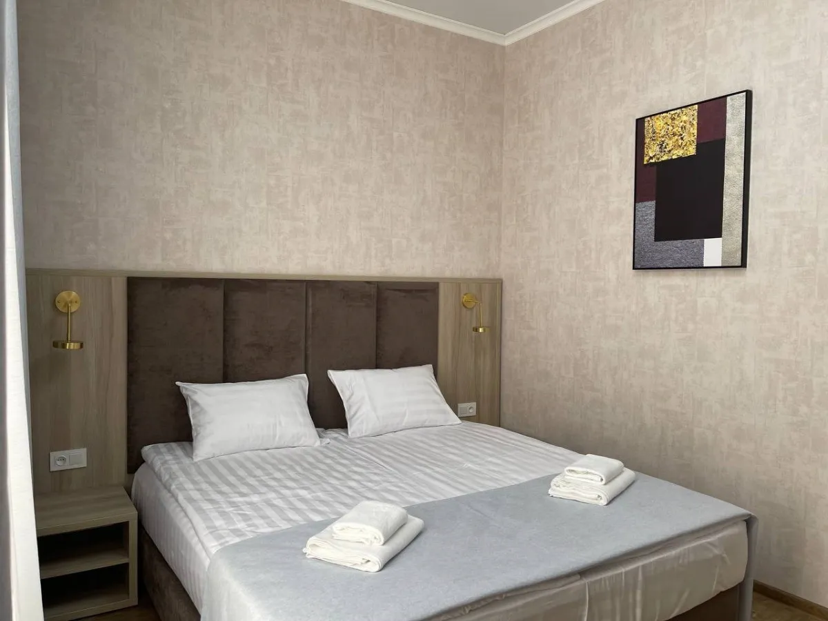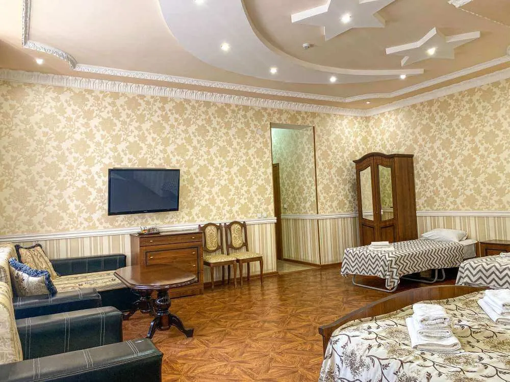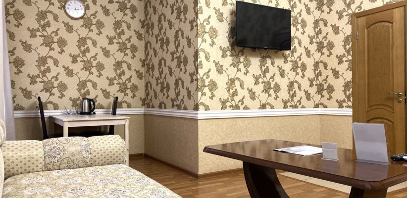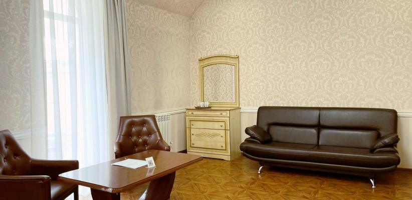 50 м2, двуспальная кровать или две односпальные кровати, отдельная гостиная с диваном-кроватью. Количество гостей: 4Suite