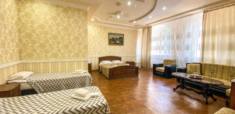 38 м2, двуспальная кровать, две односпальные кровати, зона отдыха с диваном, вид на город. Количество гостей: 4Junior Suite