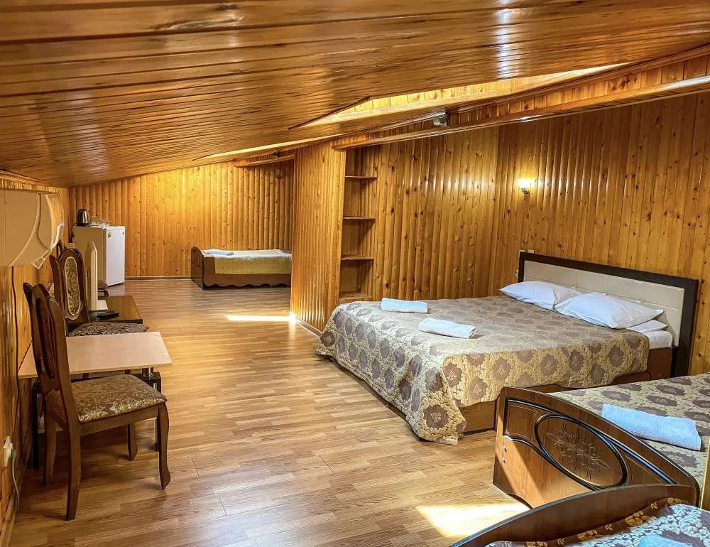 23 м2, двуспальная кровать, три односпальные кровати, мансардные окна. Количество гостей: 5Superior