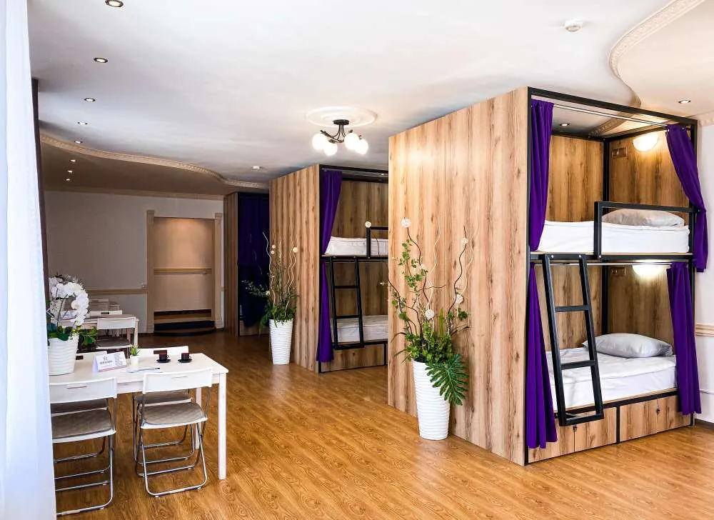 35 м2, двуспальная кровать или две односпальные кровати, зона отдыха. Количество гостей: 4Общий номер (хостел)