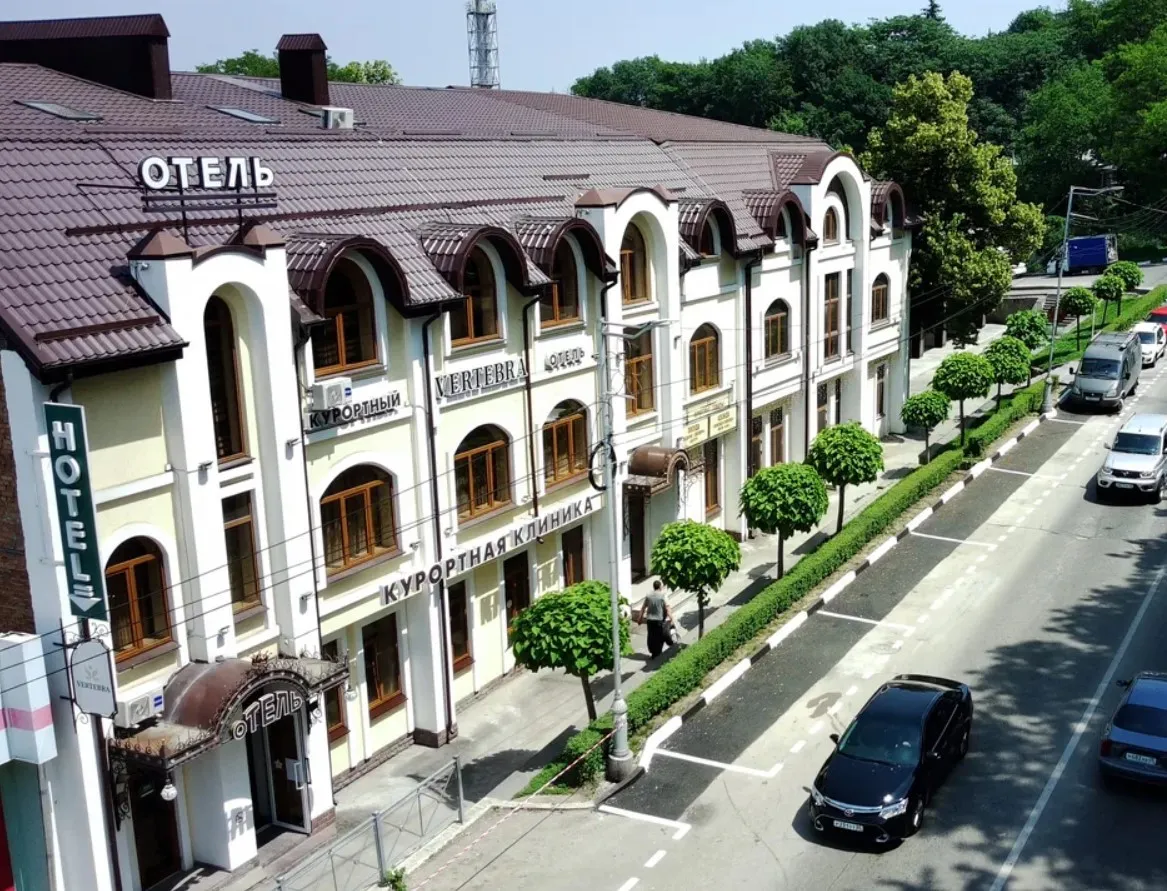 Vertebra расположена в центре Кисловодска, в начале Курортного бульвара, который ведет в Национальный парк – один из крупнейших в Европе. В шаговой доступности находятся нарзанный бювет и основные курортные маршруты города.